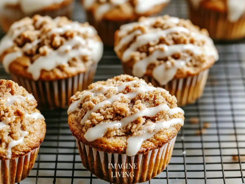 Delicious cinnamon streusel muffins with a tender crumb and crunchy topping. Perfect for breakfast or snack. Optional vanilla icing for an extra treat!