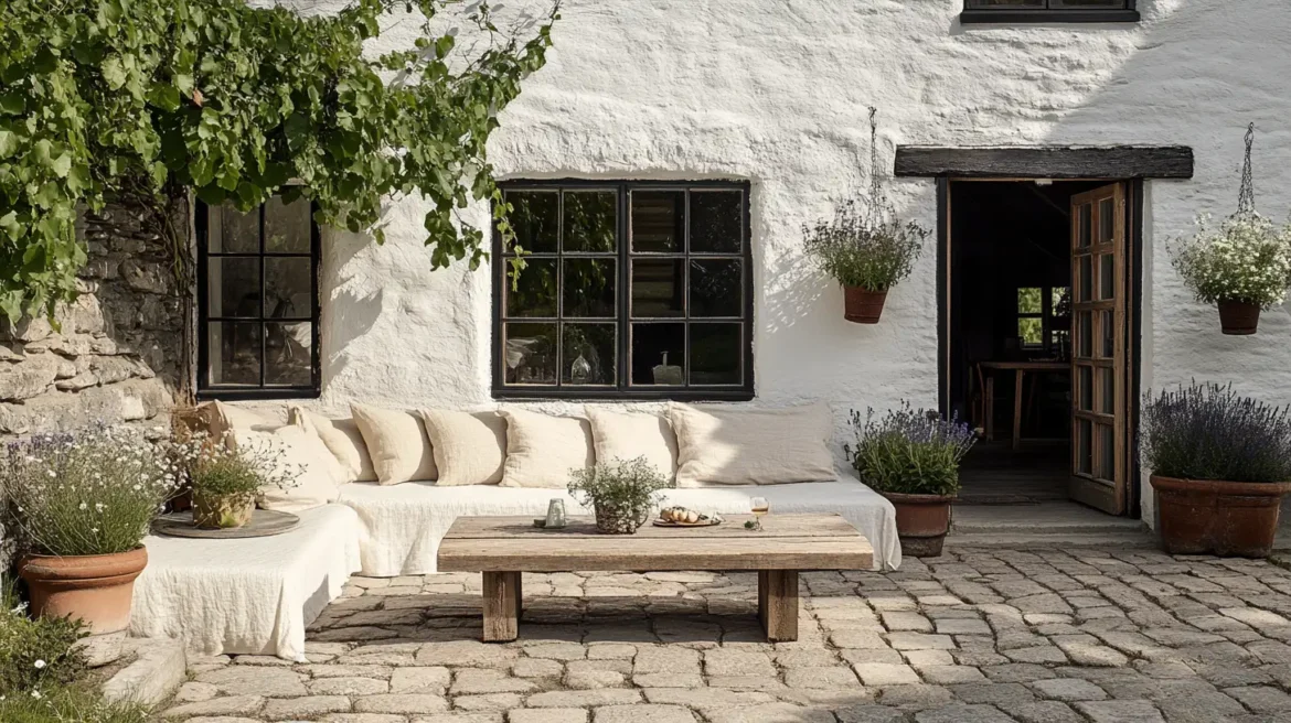 Basking in golden light and the scent of blooming herbs, this inviting outdoor space captures the essence of summer. Linen-covered seating, cool stone underfoot, and terracotta pots full of lavender and daisies create a tranquil spot to enjoy warm afternoons, slow breakfasts, or evening wine. It’s the kind of summer simplicity that feels both timeless and grounding.