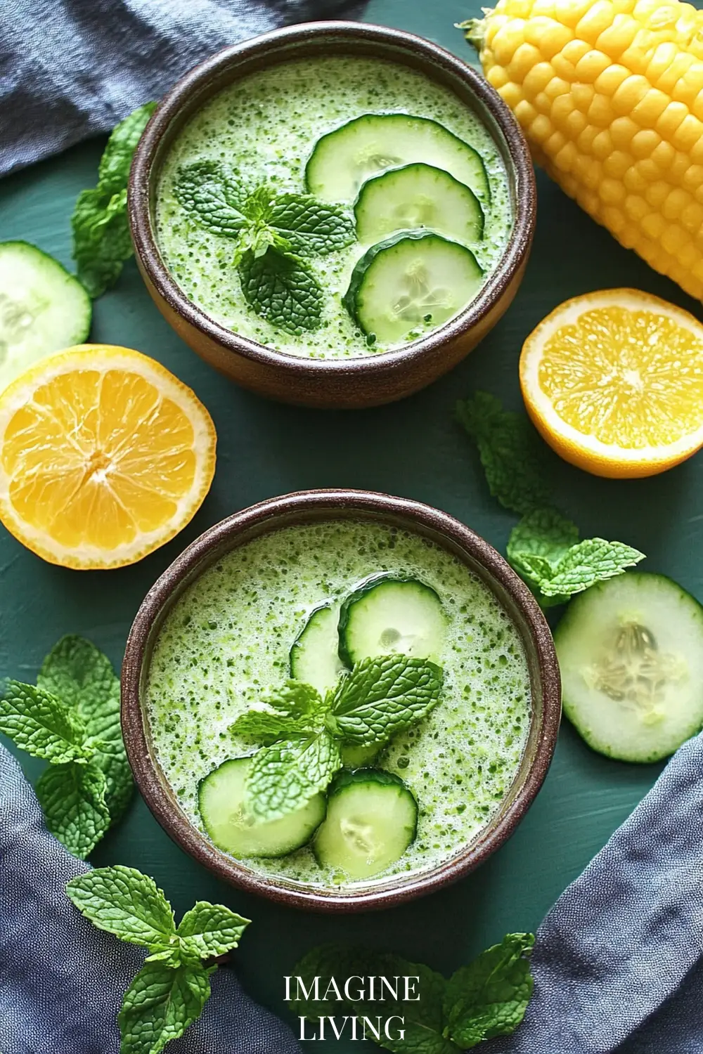 Recipe: Blend cucumber, mint, vinegar, and salt until smooth. Chill before serving.