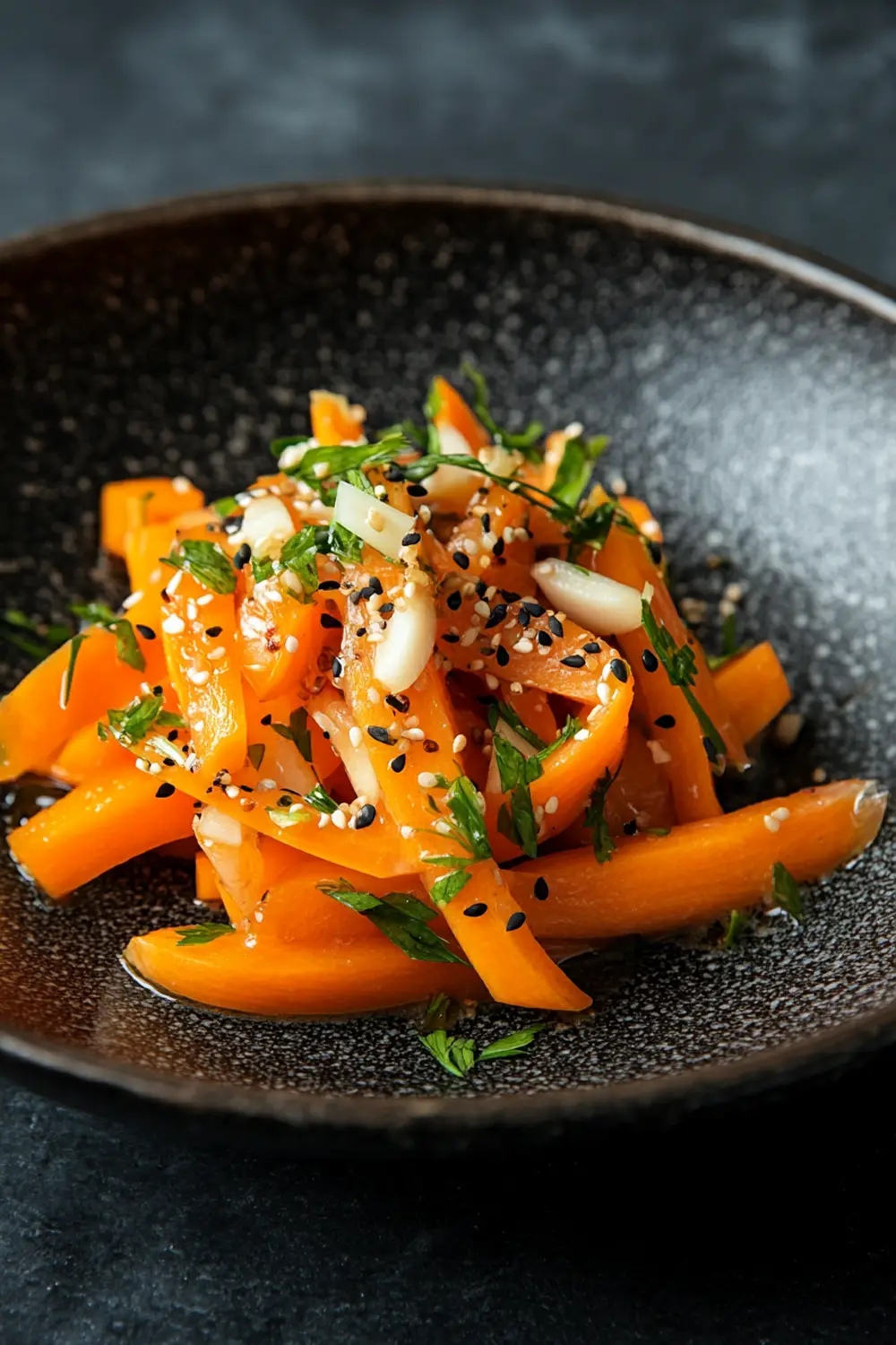 Sesame roasted carrots are a simple yet tasty side dish. The sweet, tender carrots pair perfectly with the nutty flavor of sesame seeds. This dish is easy to make and adds a lovely touch to any meal.