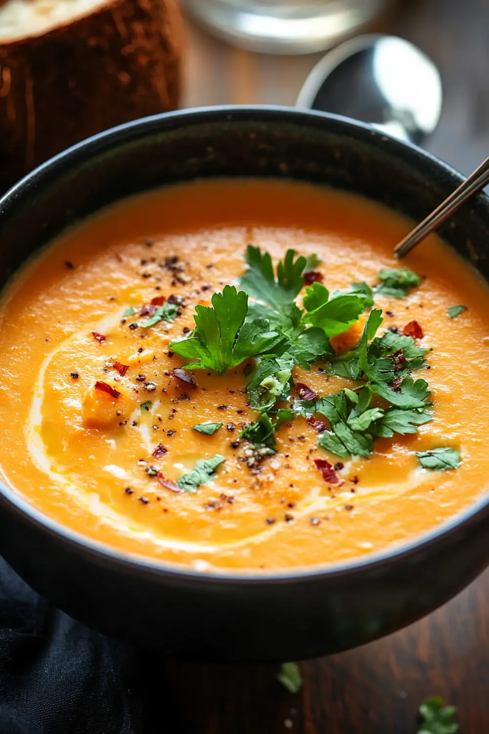 This creamy carrot and coconut soup is a warm hug in a bowl. Its vibrant color and smooth texture make it as delightful to look at as it is to eat. Pair it with some crusty bread, and you have a cozy meal that’s perfect for any day.