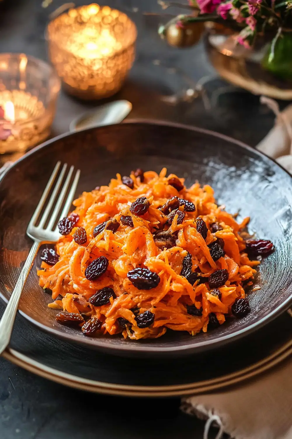 This spiced carrot and raisin salad is a delightful mix of flavors and textures. The sweetness of the carrots pairs perfectly with the chewy raisins and crunchy nuts. It’s a simple dish that adds a burst of color and taste to any meal!