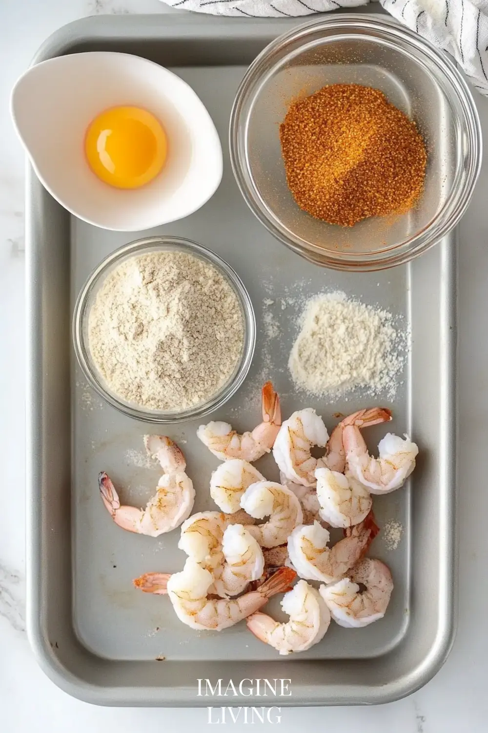 Pat the shrimp dry with paper towels to help the breading stick better. Remove tails if preferred.