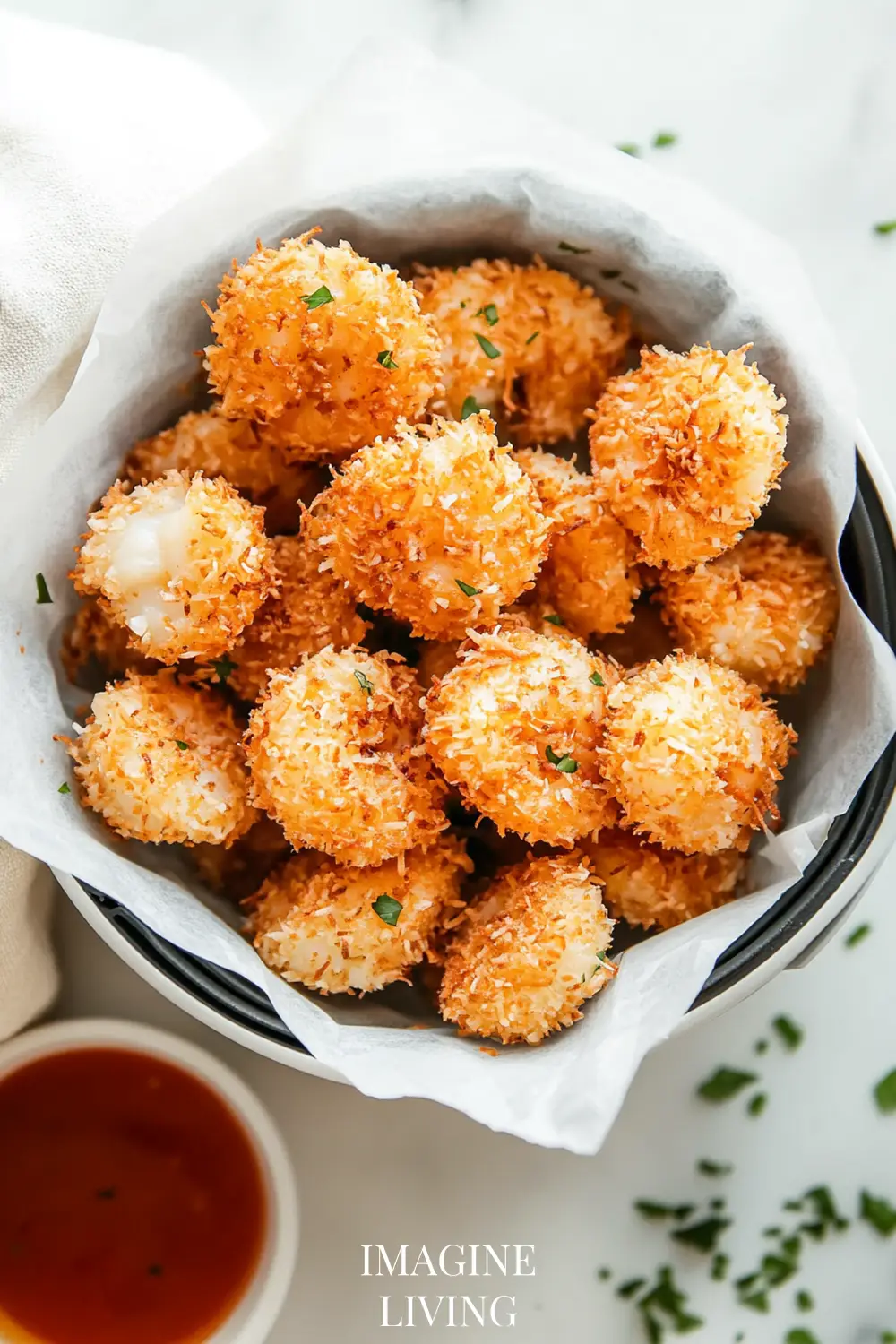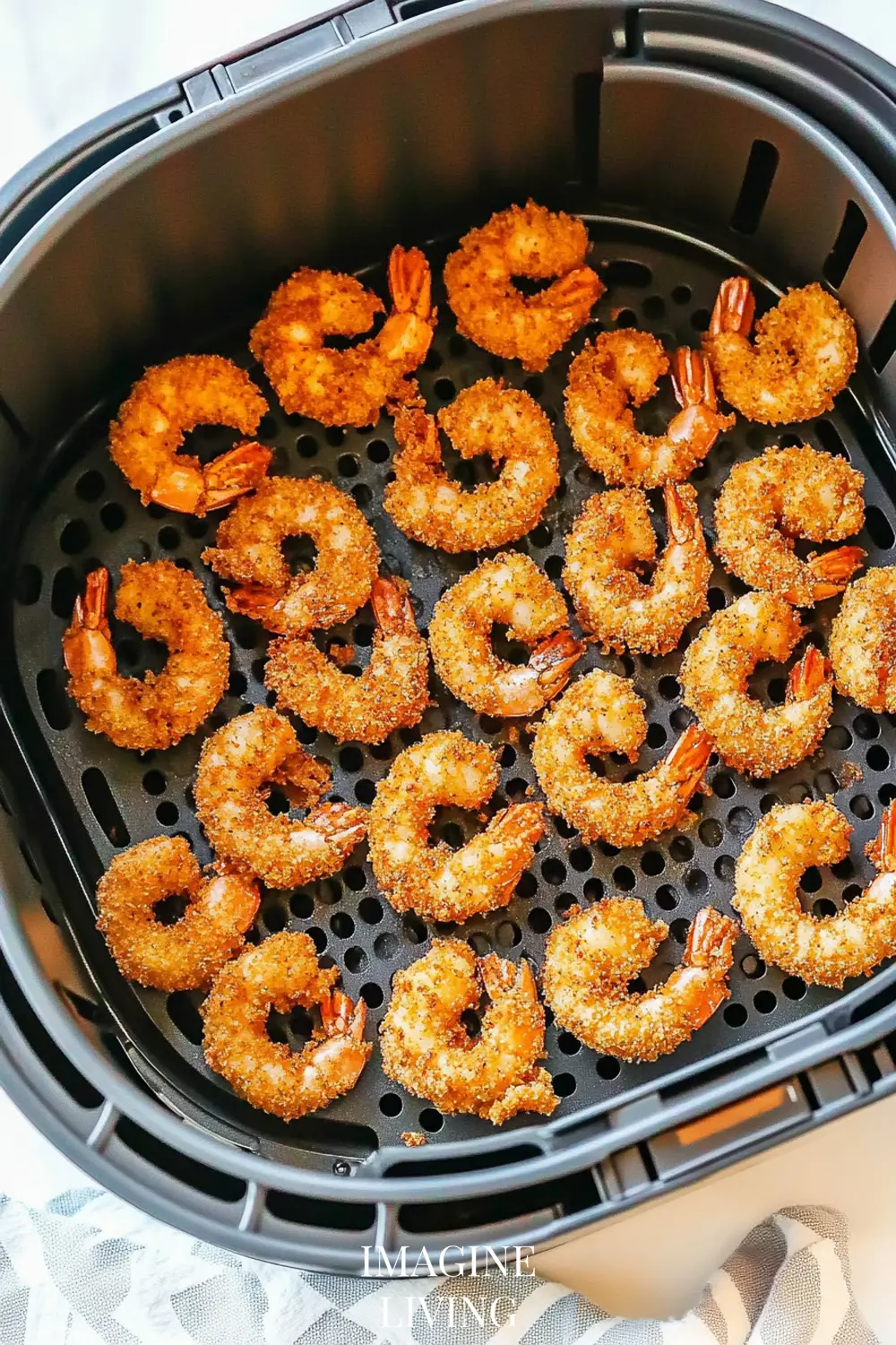 Air fry at 390°F (200°C) for 8–10 minutes, flipping halfway. Shrimps should be golden and sizzling.