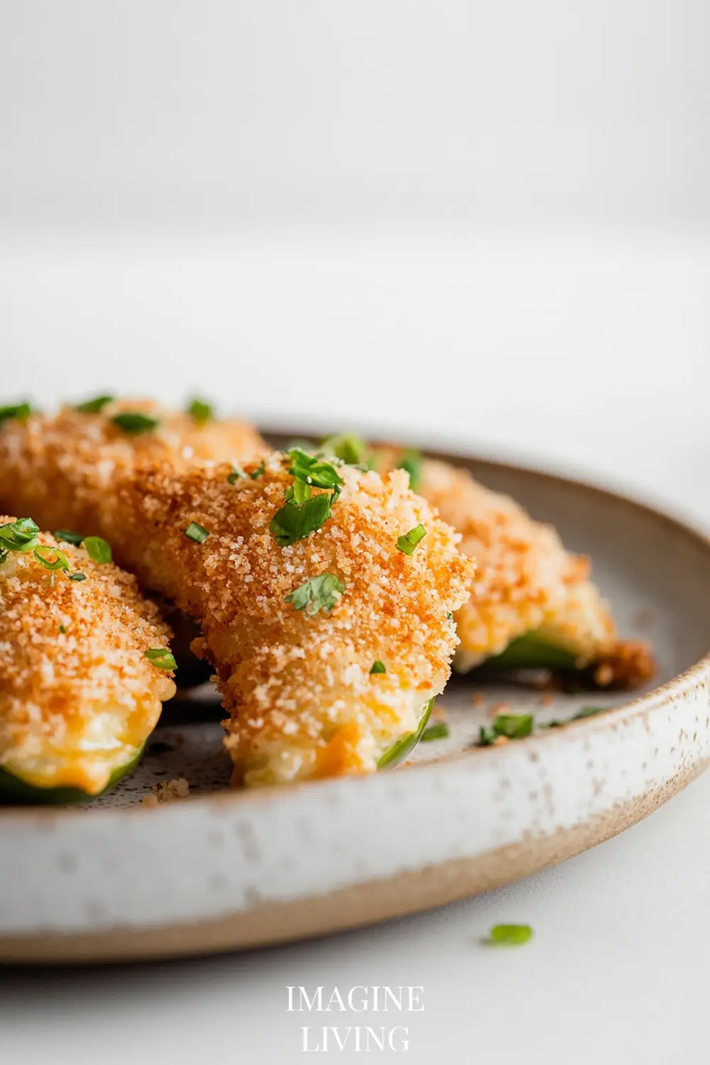 Dip the filled jalapeños in beaten egg, then coat in panko before air frying.