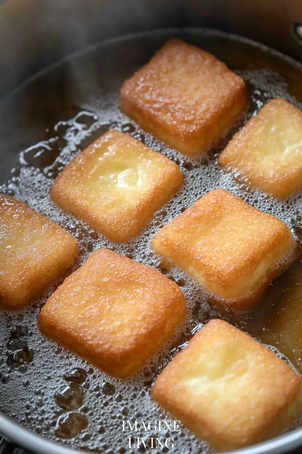 Heat oil in a deep fryer or pot to 360°F. Fry a few squares at a time until golden brown, about 2–3 minutes per side. Flip with a slotted spoon for even cooking.