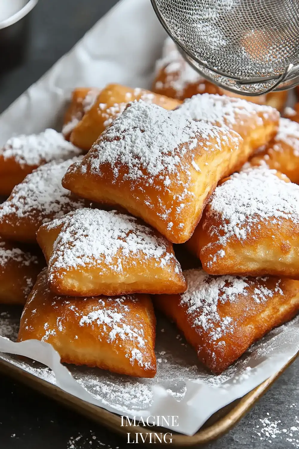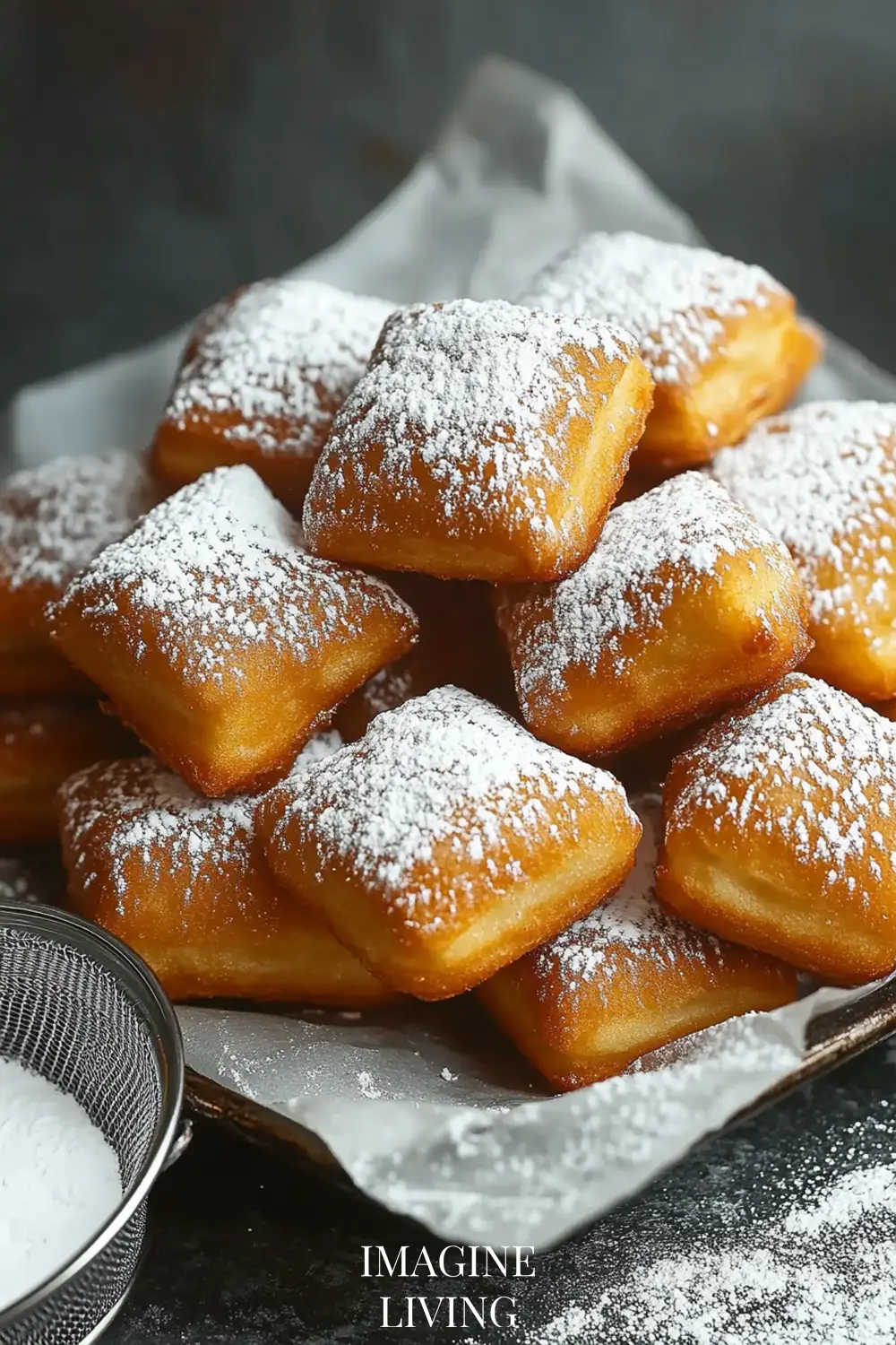 Transfer beignets to a paper towel-lined rack. While still warm, sift powdered sugar generously over the top.