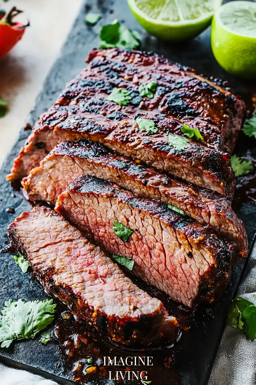 Heat a grill or grill pan over medium-high heat. Remove the steak from the marinade and grill for about 4–5 minutes per side, depending on thickness. Let it rest for 5 minutes before slicing thinly across the grain.