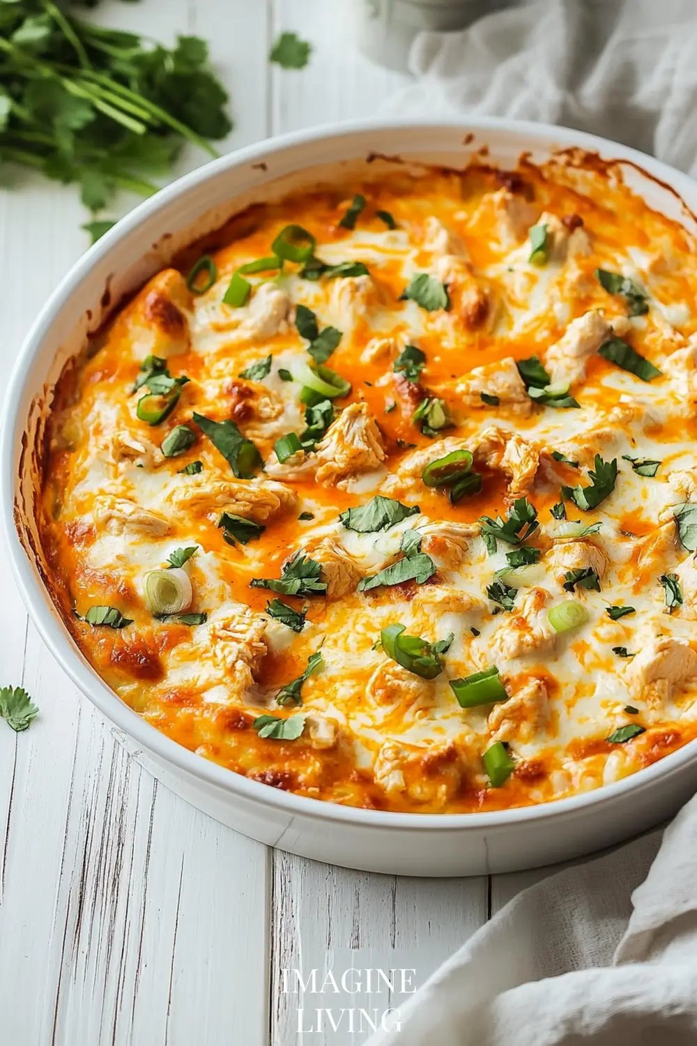 For fans of bold, tangy flavors, swap out the ranch dressing for blue cheese dressing. To enhance the flavor further, crumble blue cheese on top before baking—it melts into the dip beautifully.