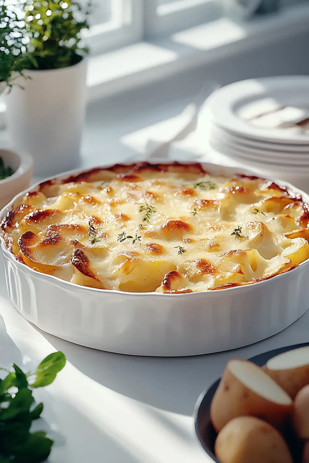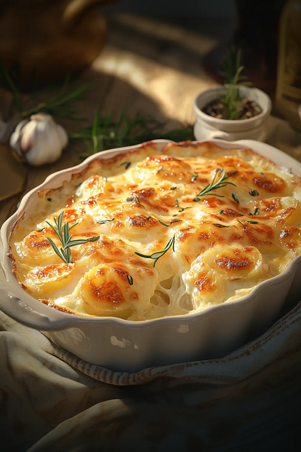 Seasoning: Season each potato layer with salt, pepper, and fresh herbs like thyme or rosemary. This makes every bite taste great.