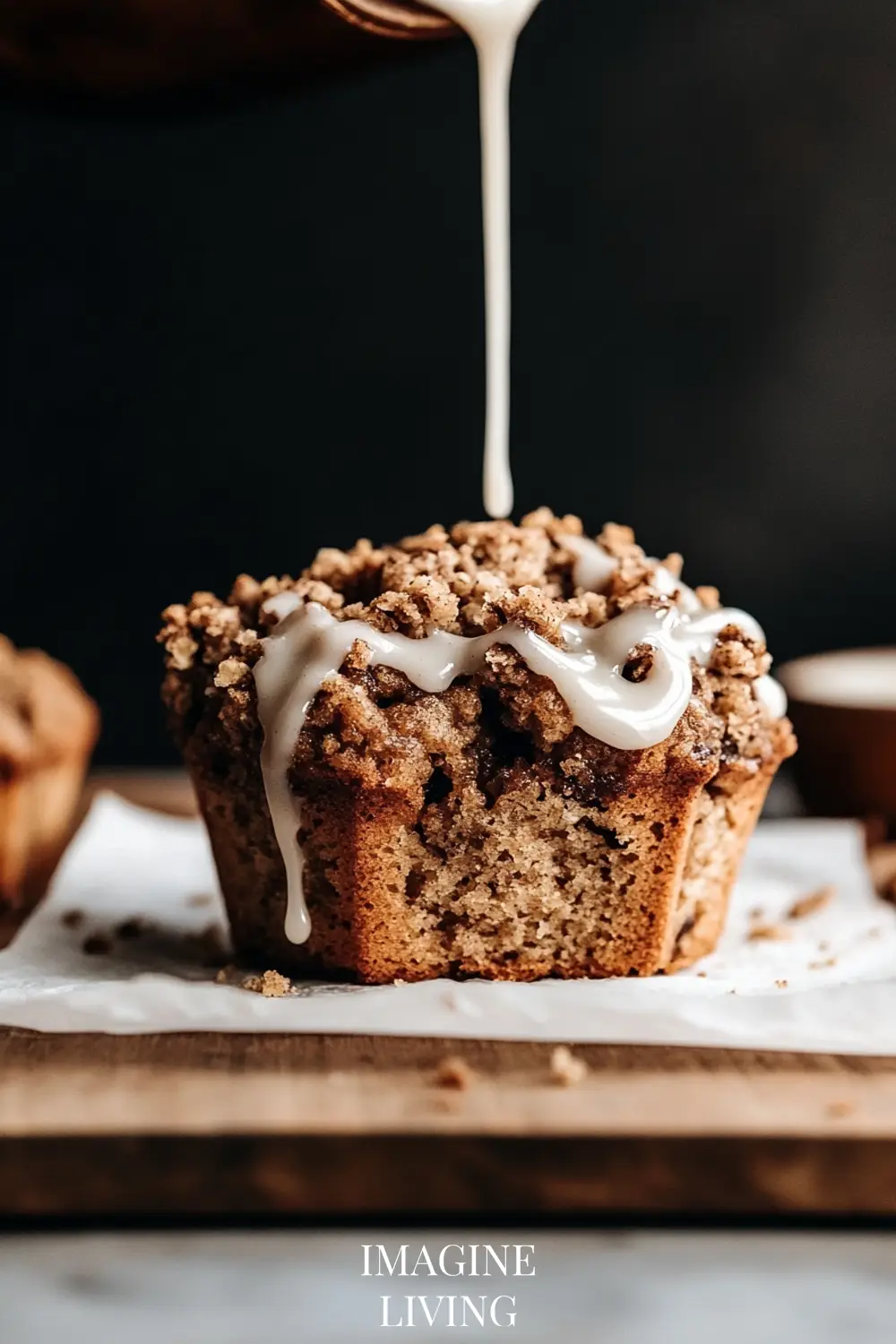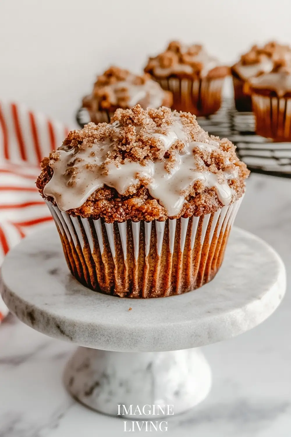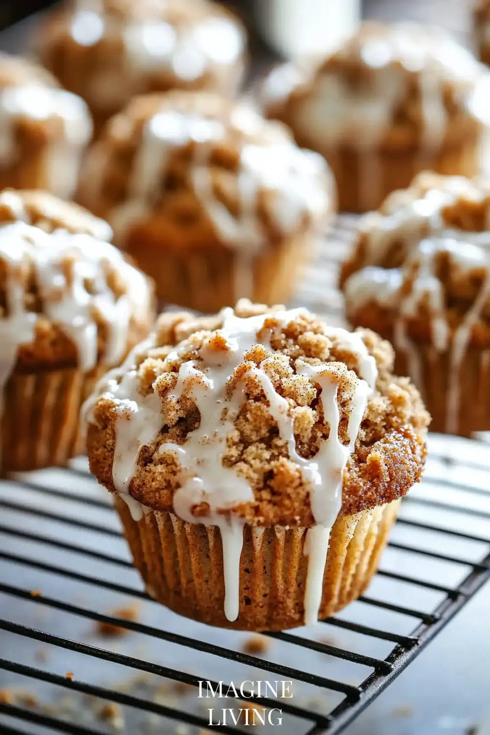Soft, fluffy cinnamon muffins topped with a buttery streusel crumble and optional vanilla icing. Perfect for cozy mornings or a delightful snack.