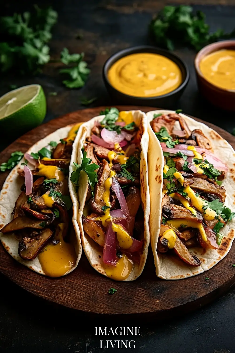 Tulum, Mexico, is where the ocean breeze meets the intoxicating aroma of sizzling street food. One unforgettable evening, we stumbled upon a cozy spot where the locals gathered, savoring simple yet bold flavors wrapped in warm tortillas. Inspired by that moment, this recipe brings together smoky roasted portobello mushrooms, sweet caramelized onions, and a luscious homemade honey mustard dressing, all nestled in delicate mini tortillas and topped with fresh parsley.