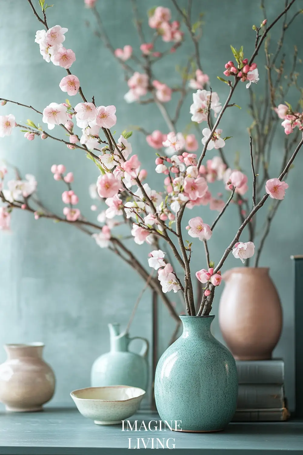 - Entryway Console – Keep it simple with a tall, sculptural vase of cherry blossoms.