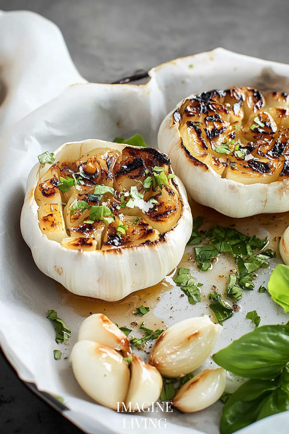 Place on the grill over medium heat and cook for 20–25 minutes, until the cloves are golden, soft, and caramelized.
