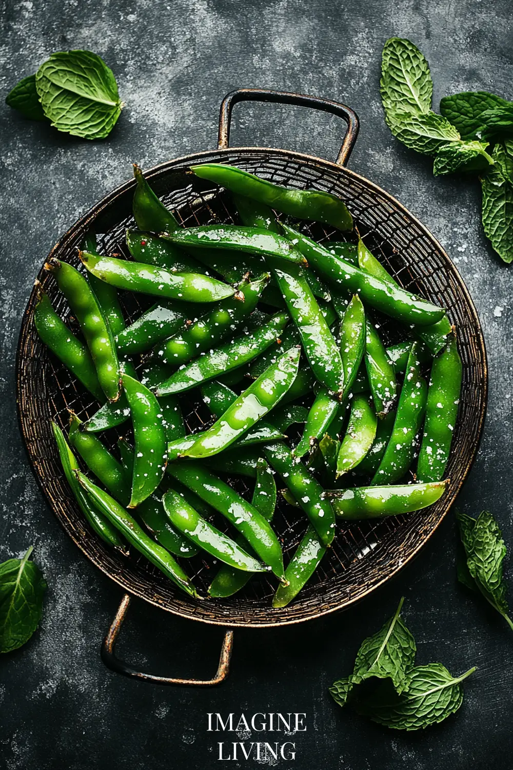 7. Snap Peas in a Grill Basket with Fresh Mint