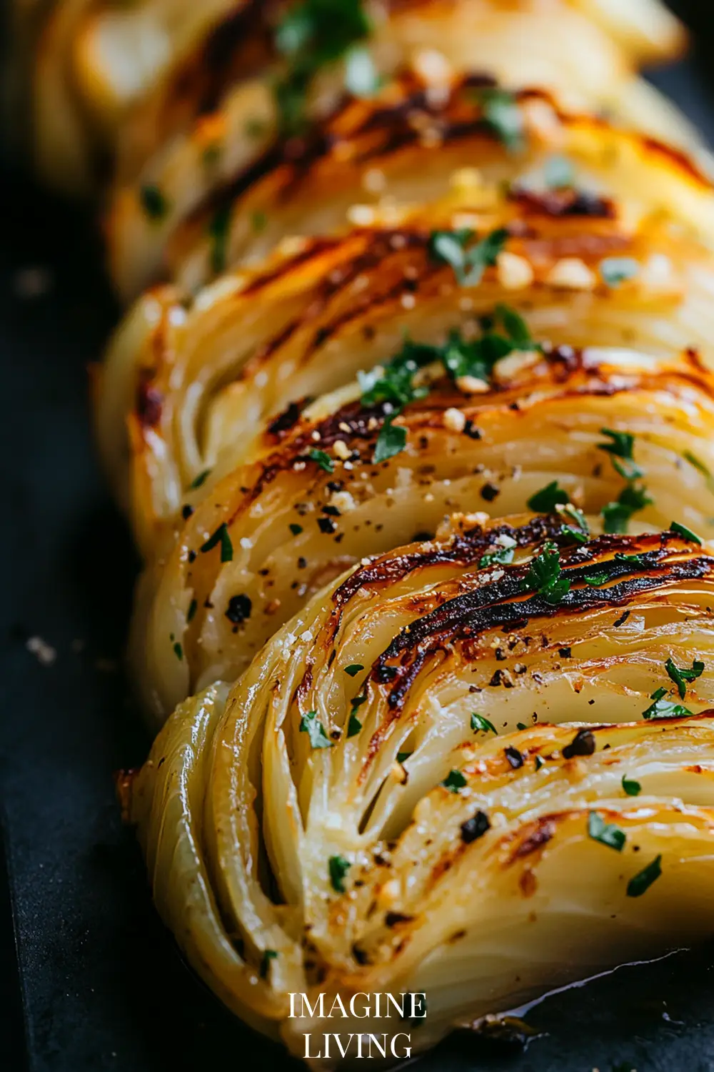 Drizzle the vinaigrette over the warm cabbage wedges and serve immediately.