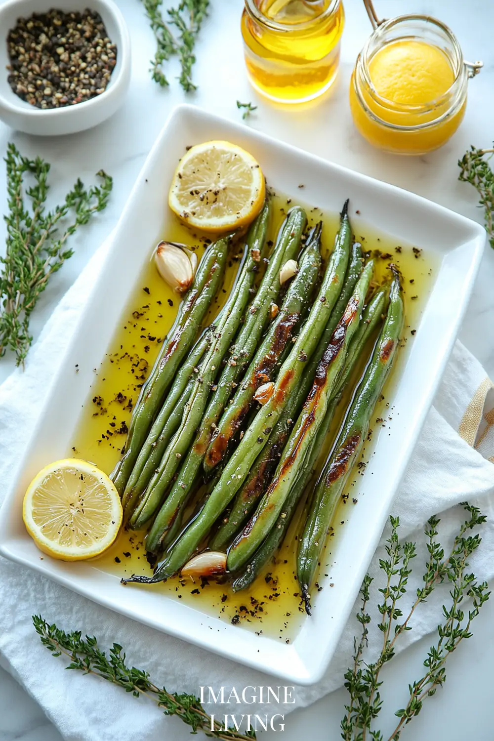 Toss the green beans with olive oil, minced garlic, salt, and pepper.