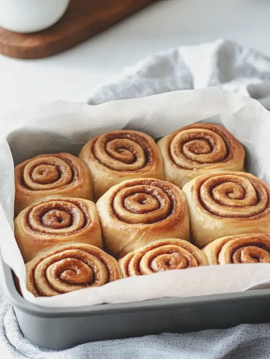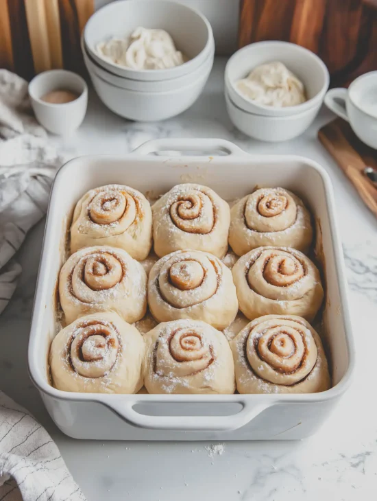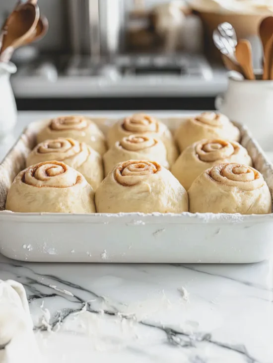 Arrange each roll cut-side up in a greased or parchment-lined 9×13-inch baking dish. This ensures they have enough room to expand during baking. Each roll sits cozily against its neighbor, ready to rise and meld together beautifully.