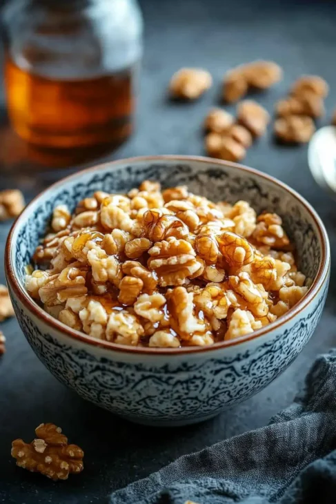 Maple syrup’s sweetness pairs well with walnuts’ earthy flavor. It’s a tasty and healthy snack full of good fats and antioxidants.