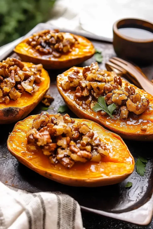 Ever craved something both indulgent and healthy at the same time? This Maple Walnut Sweet Potato Skins recipe is your answer. Sweet potato skins are crisped to perfection, topped with a rich maple syrup glaze and crunchy walnuts. It’s a vegetarian snack that will delight your taste buds!