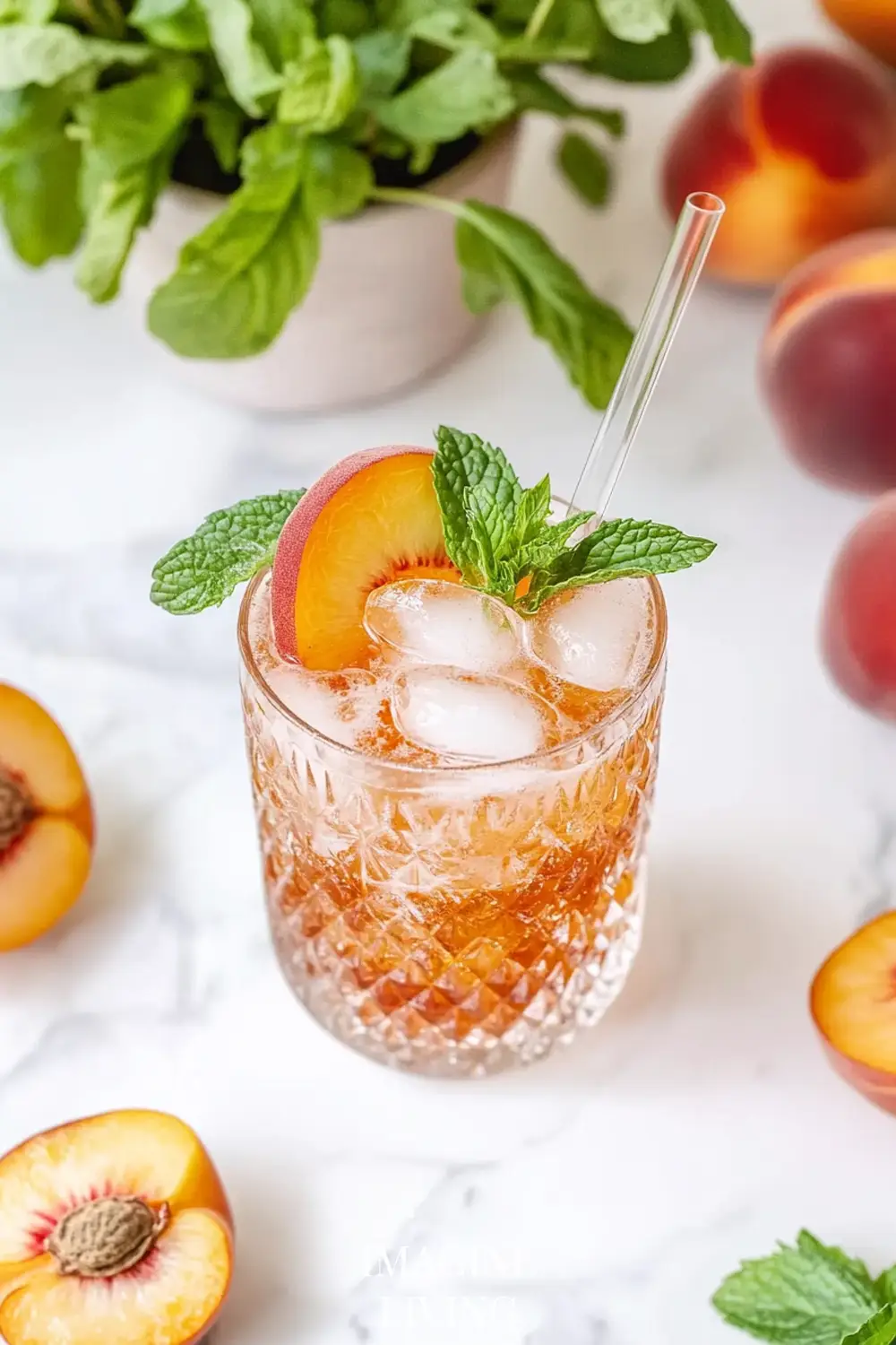 Tip: Use firm-ripe peaches for clean slices that won’t get mushy in your glass.