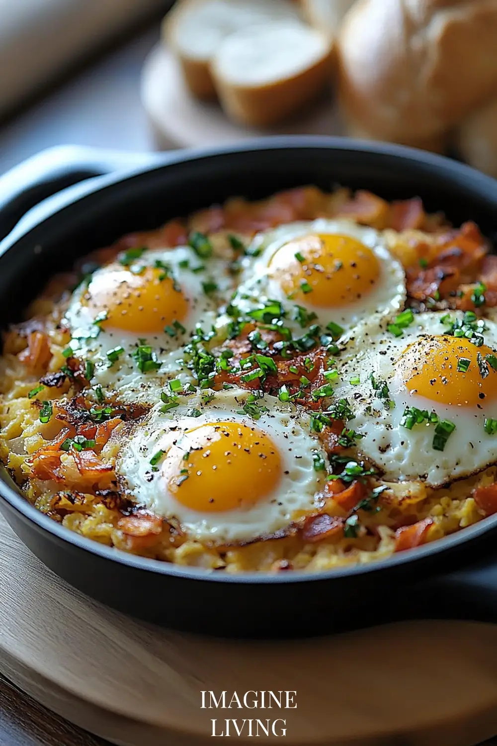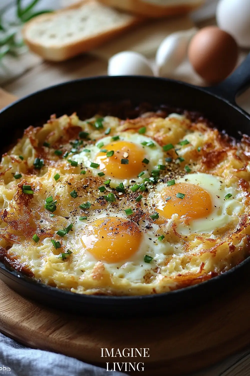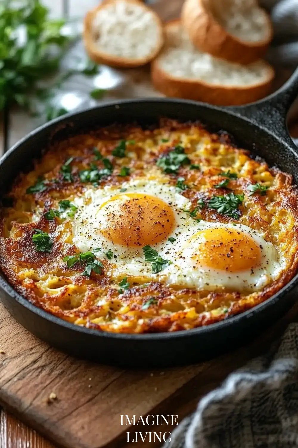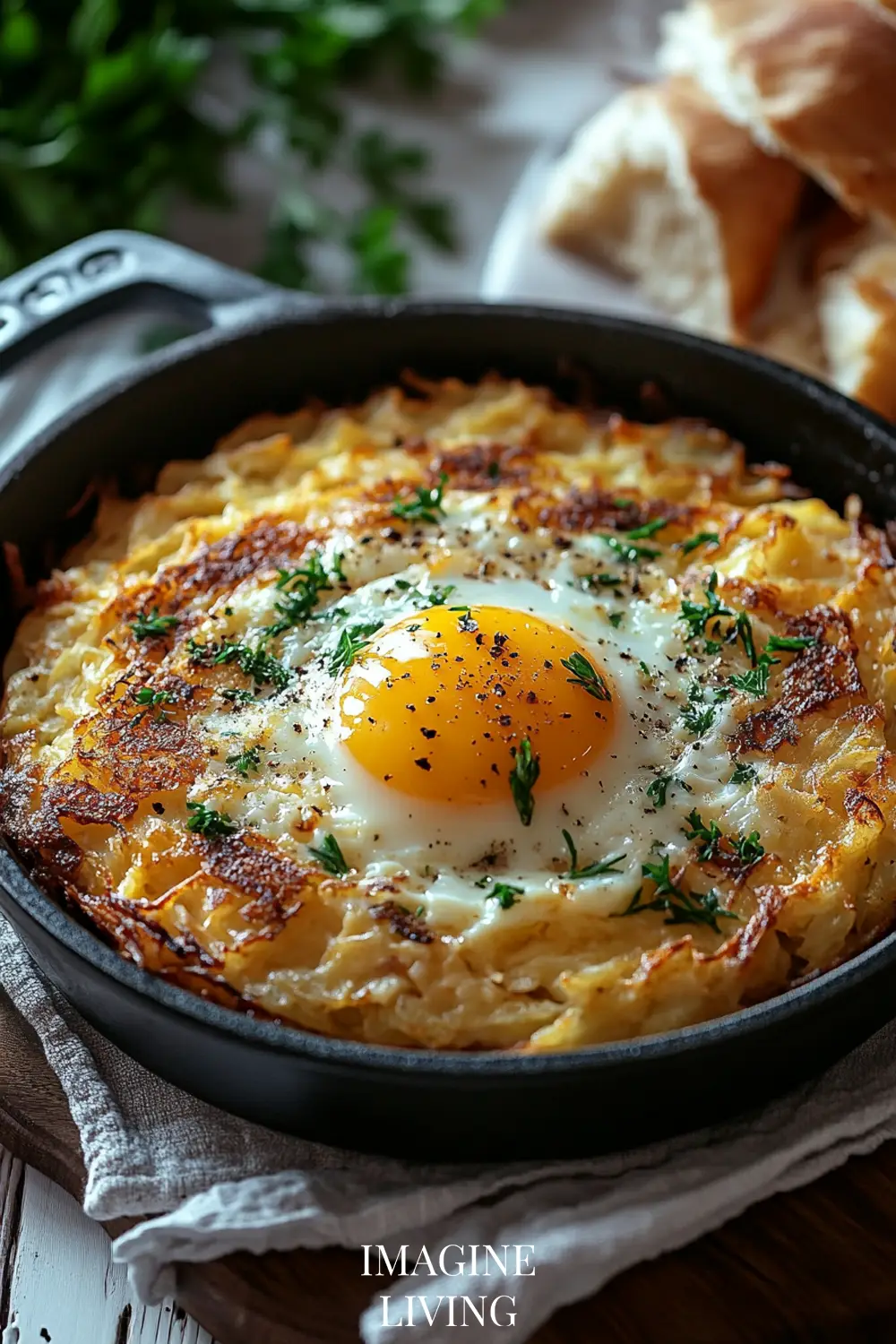 - Plate the hash browns or serve them directly in the skillet for a rustic presentation. Top with fried eggs and garnish with fresh herbs, if desired.