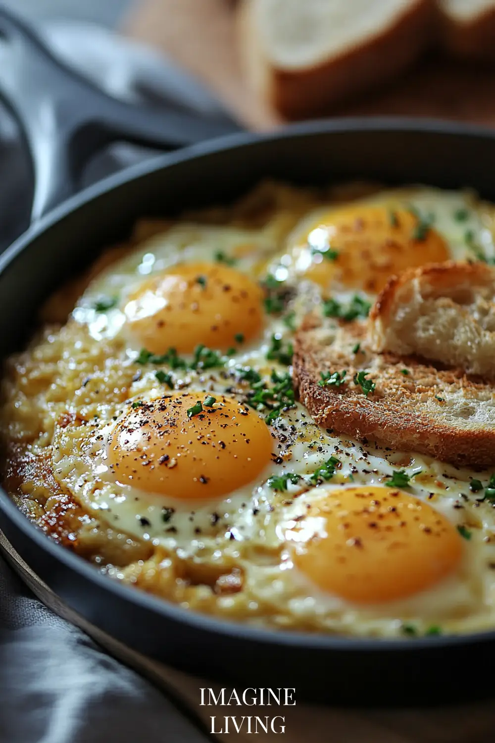Tip: Cover the skillet with a lid for a few minutes to set the yolks gently without flipping.