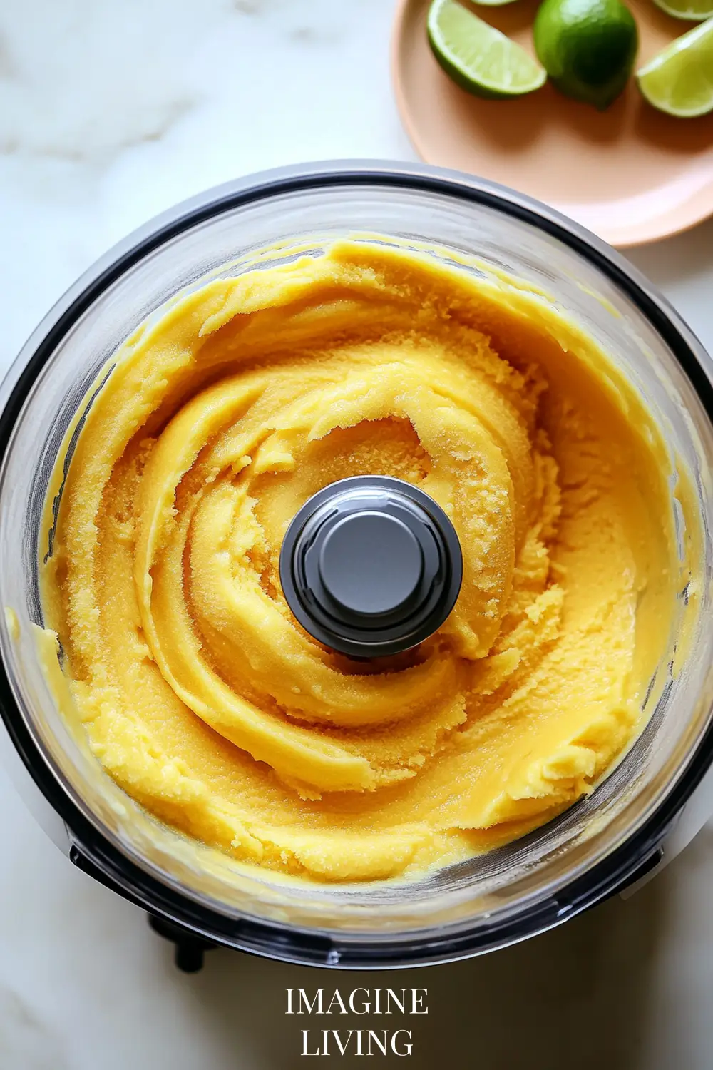 - In a blender or food processor, combine mango cubes, lime juice, maple syrup, and water. Blend until smooth and creamy.