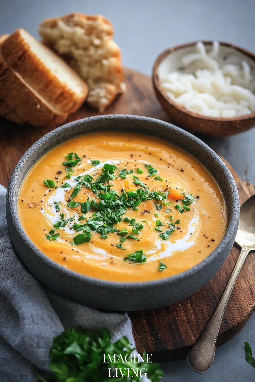 - Serve: Ladle into bowls, garnish with cilantro or parsley, and swirl with coconut milk.