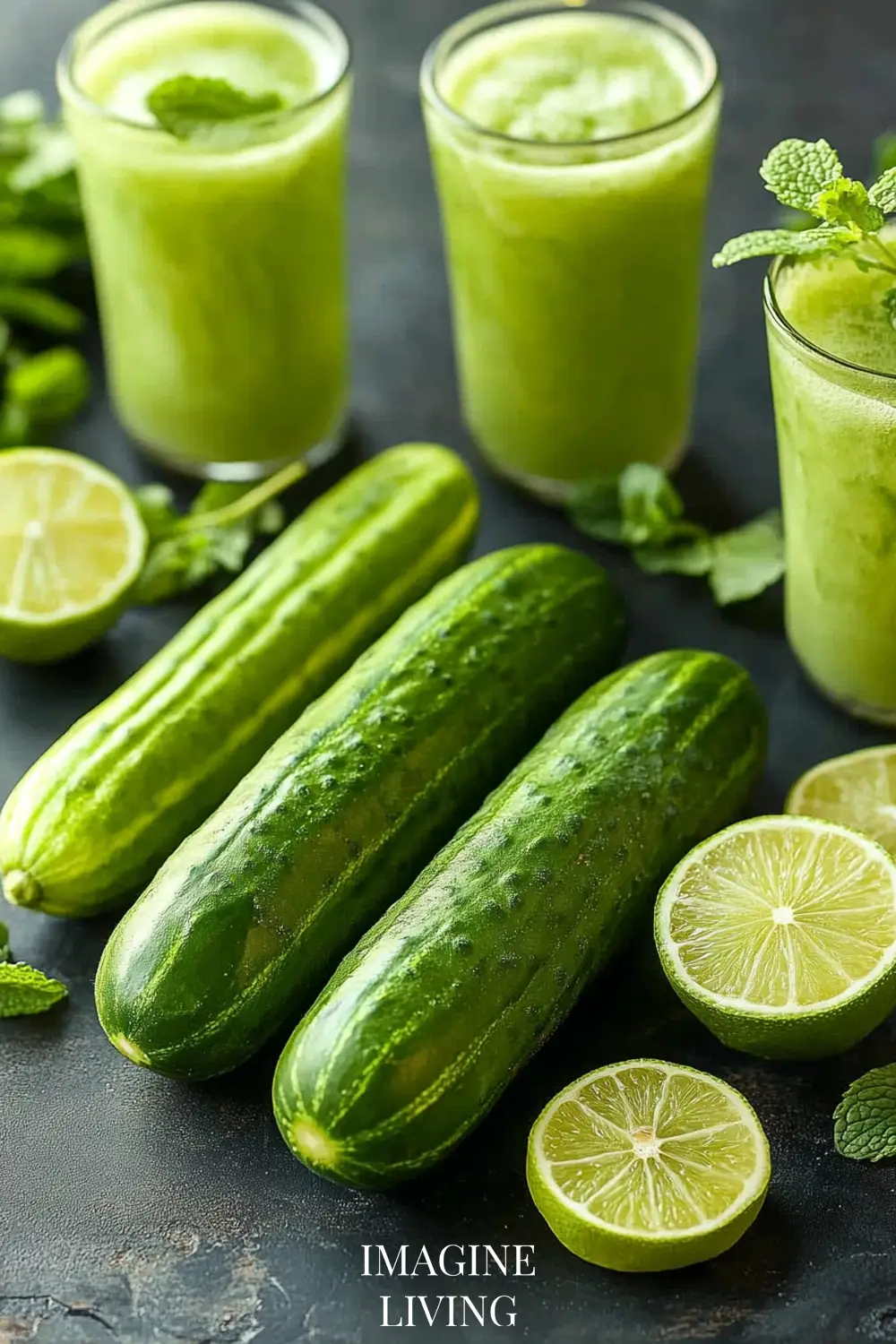 Blend cucumber and mint, strain, and mix with lime juice.
