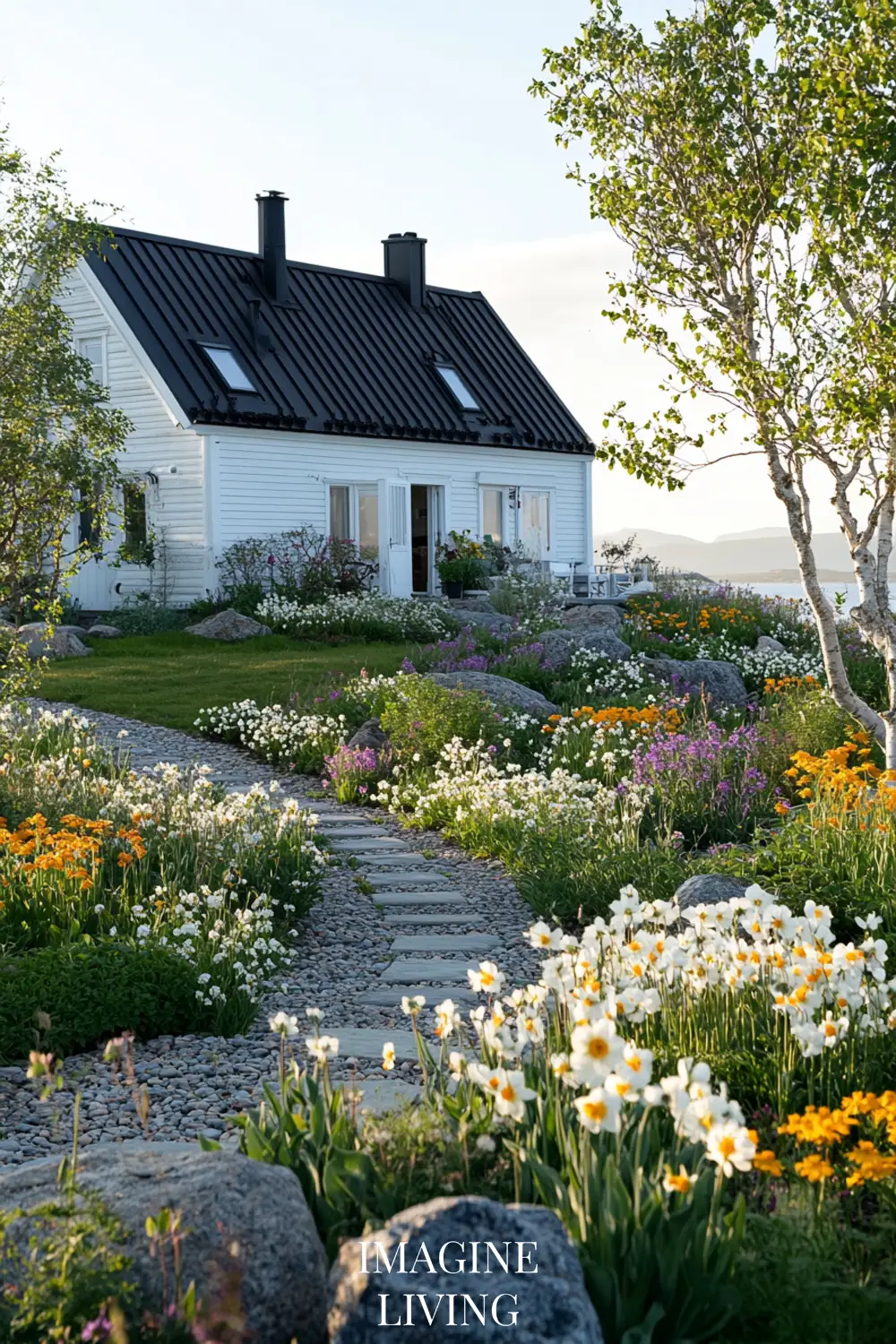 💡 Tip: Avoid overly manicured flower beds—Scandinavian gardens are meant to feel organic and slightly wild, with a “curated but not controlled” aesthetic.