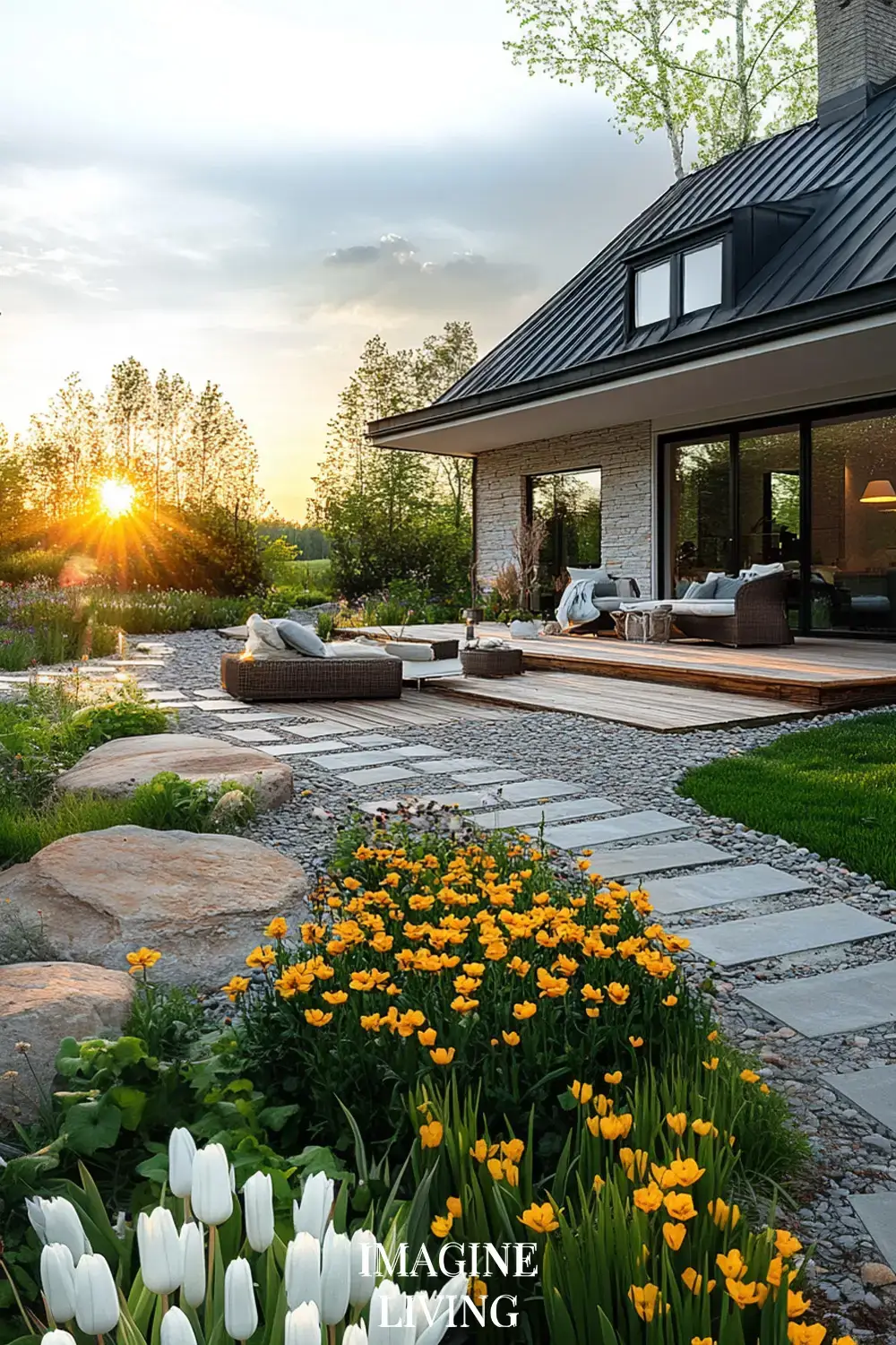 ✔ Subtle Wildflower Integration: A touch of wildflowers is welcome, but they remain controlled—appearing along fences or between stone elements rather than dominating the space.