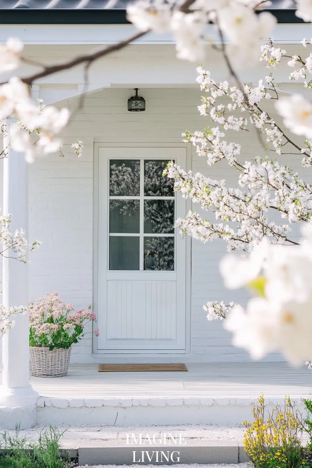 A minimalist spring cottage should have an outdoor space that feels inviting but not overdone. Instead of overcrowding your porch with furniture, keep it functional and curated.