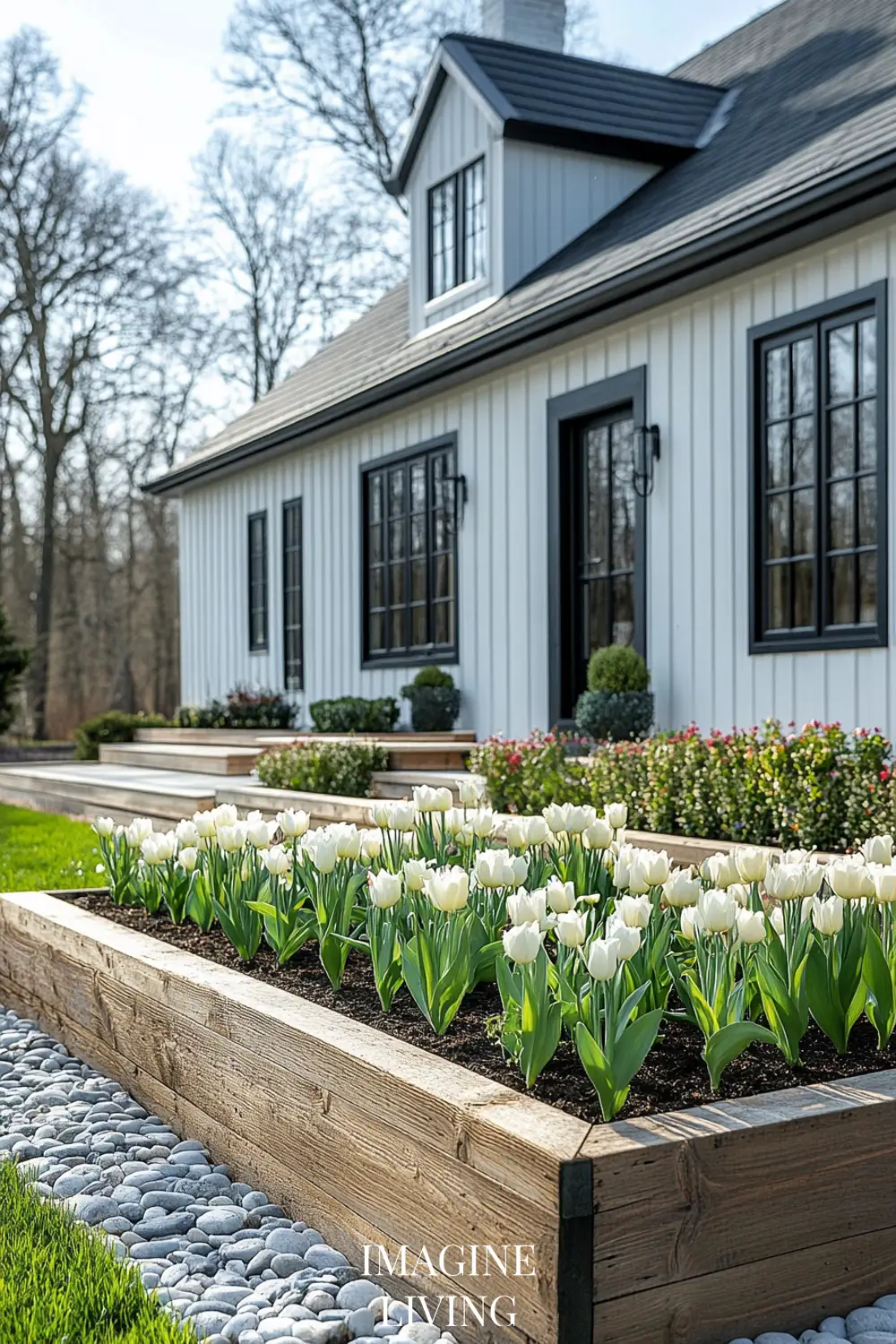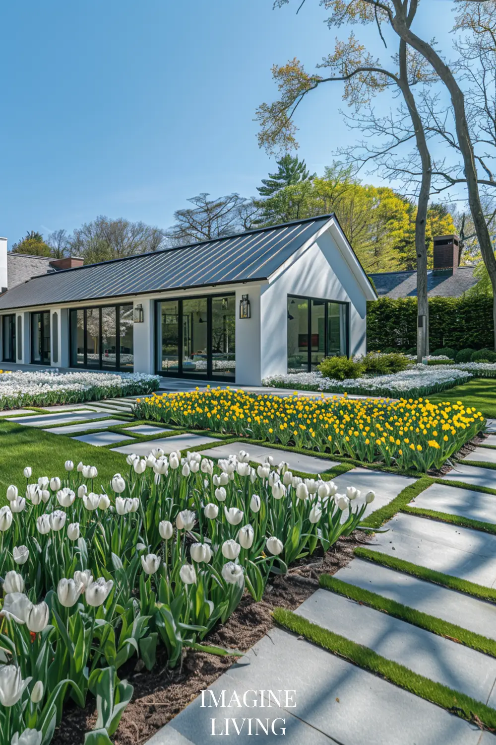 - Instead of overgrown gardens, opt for neatly arranged flower beds with limited but impactful choices (think white tulips, lavender, or delicate greenery).