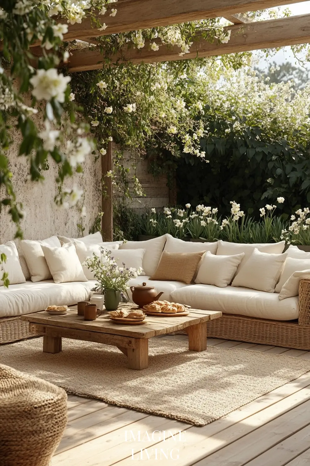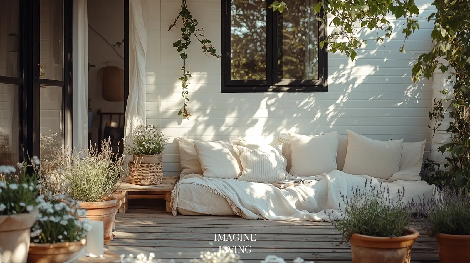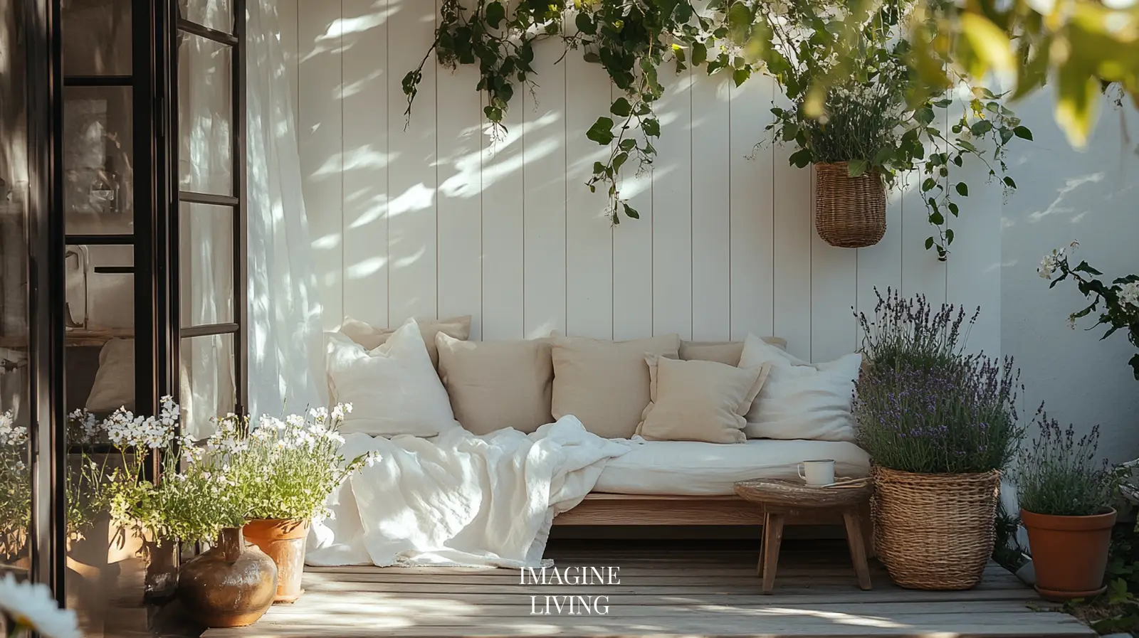 Dappled sunlight through trees, linen curtains, or pergola beams creates ever-changing patterns. In the evening, soft candlelight or solar lanterns replace harsh overheads.