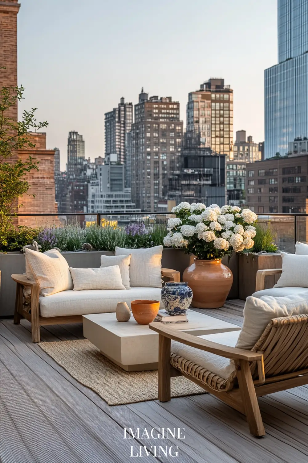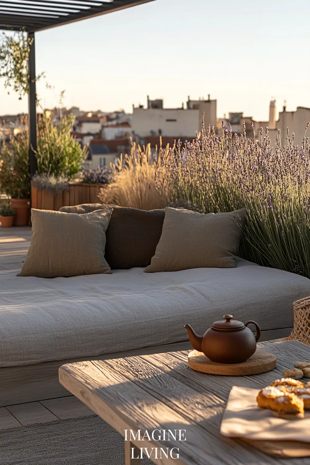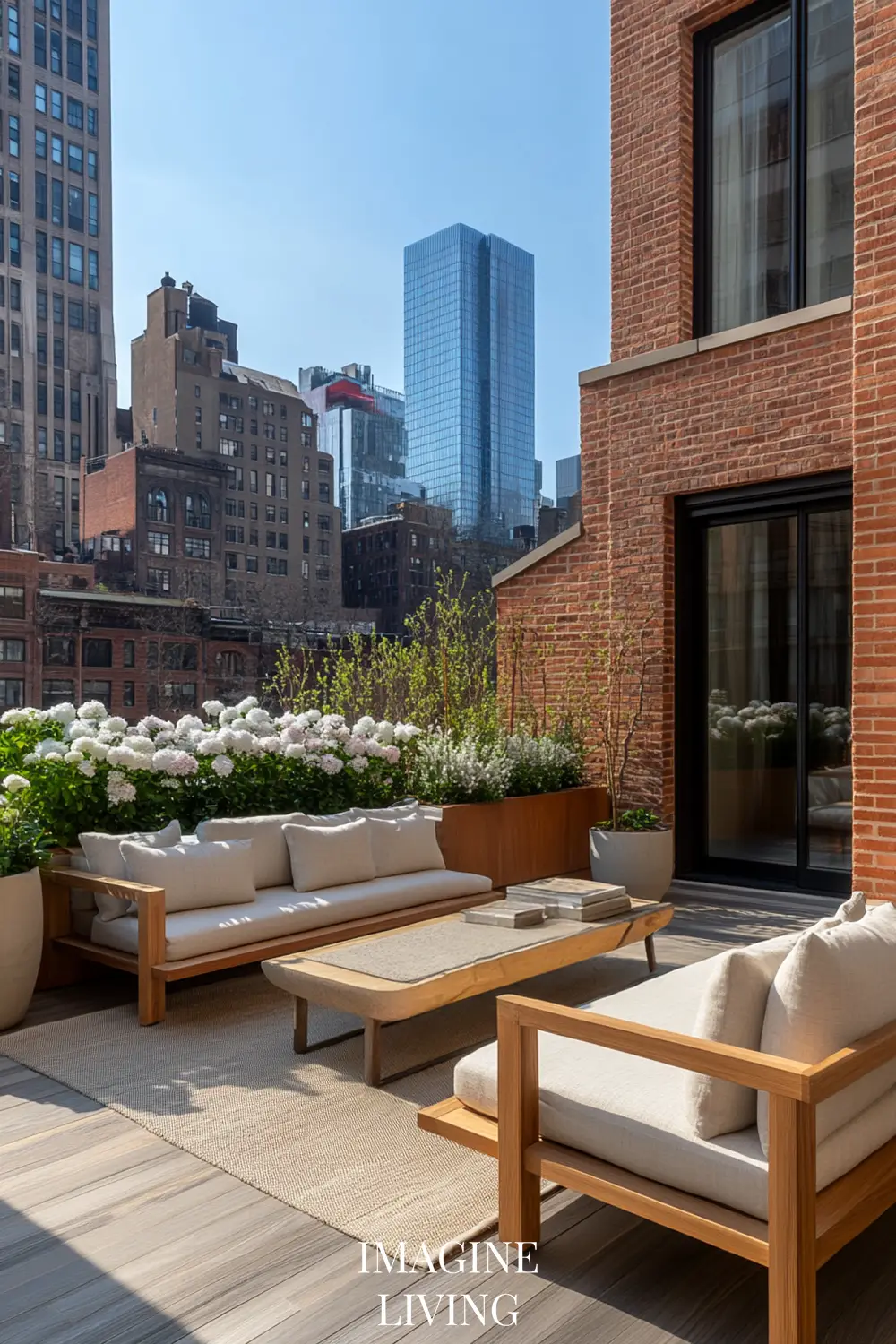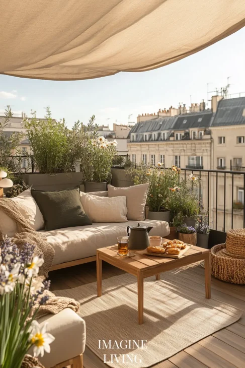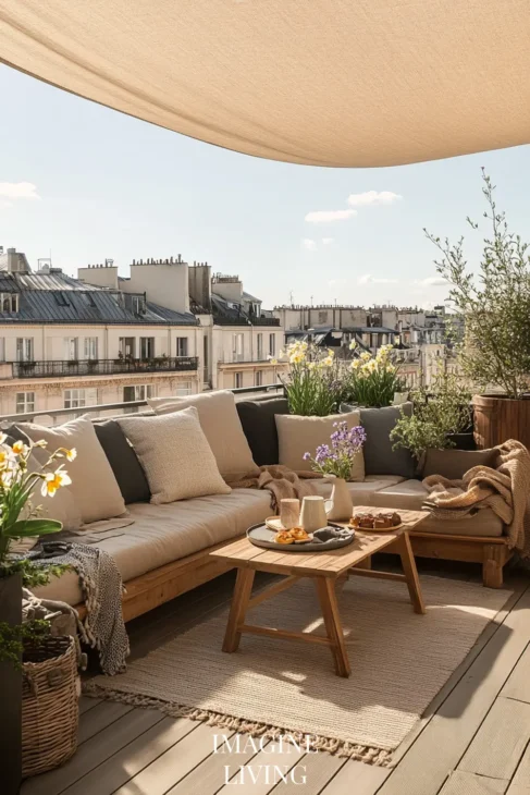 Rooftop terraces in cities like Paris or New York marry clean lines with curated softness. It’s all about creating intimacy within an expansive view. Here, structured greenery meets tactile comfort.
