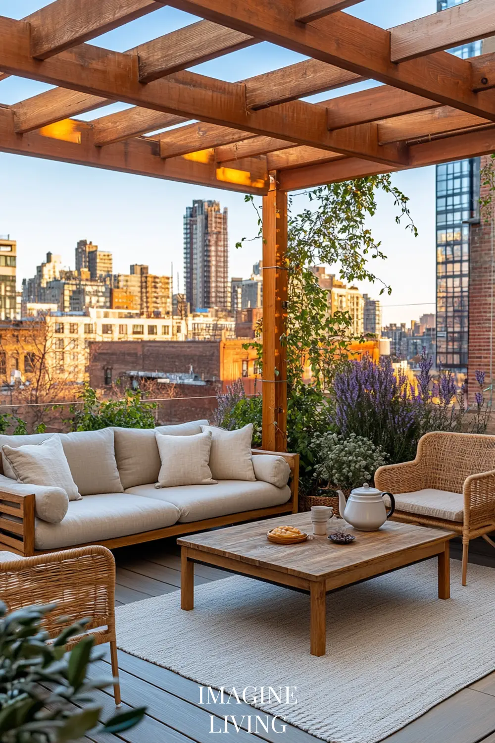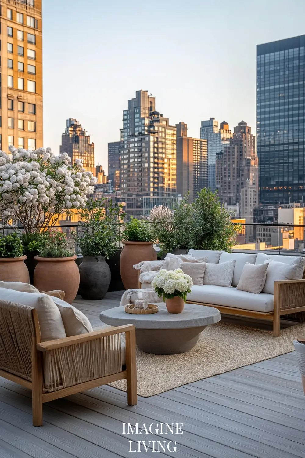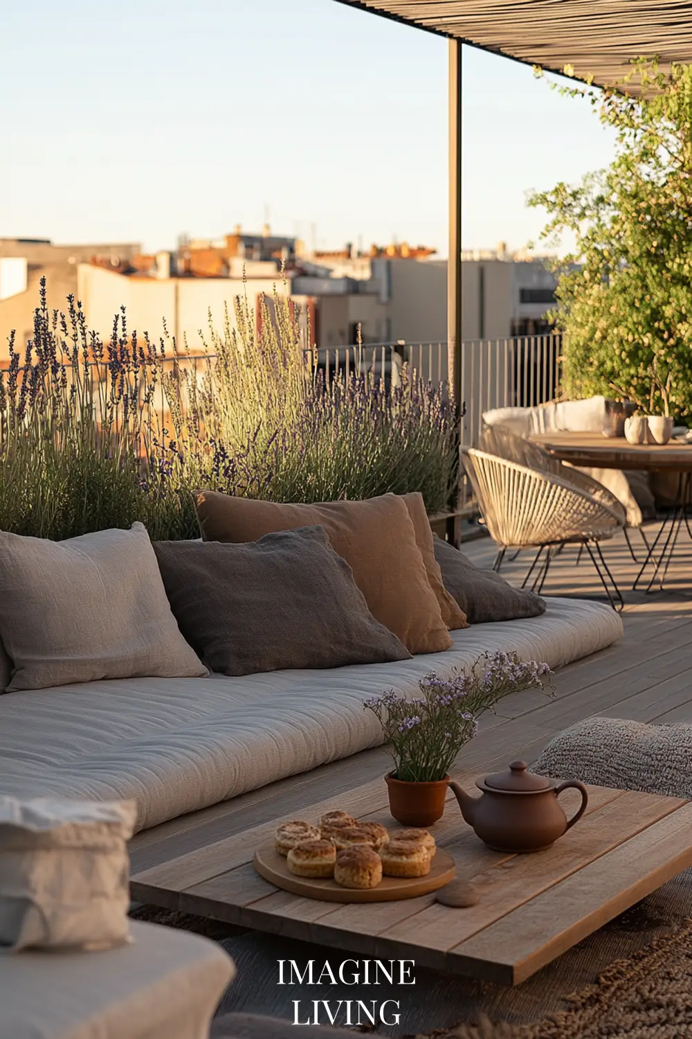 Rooftop terraces in cities like Paris or New York marry clean lines with curated softness. It’s all about creating intimacy within an expansive view. Here, structured greenery meets tactile comfort.