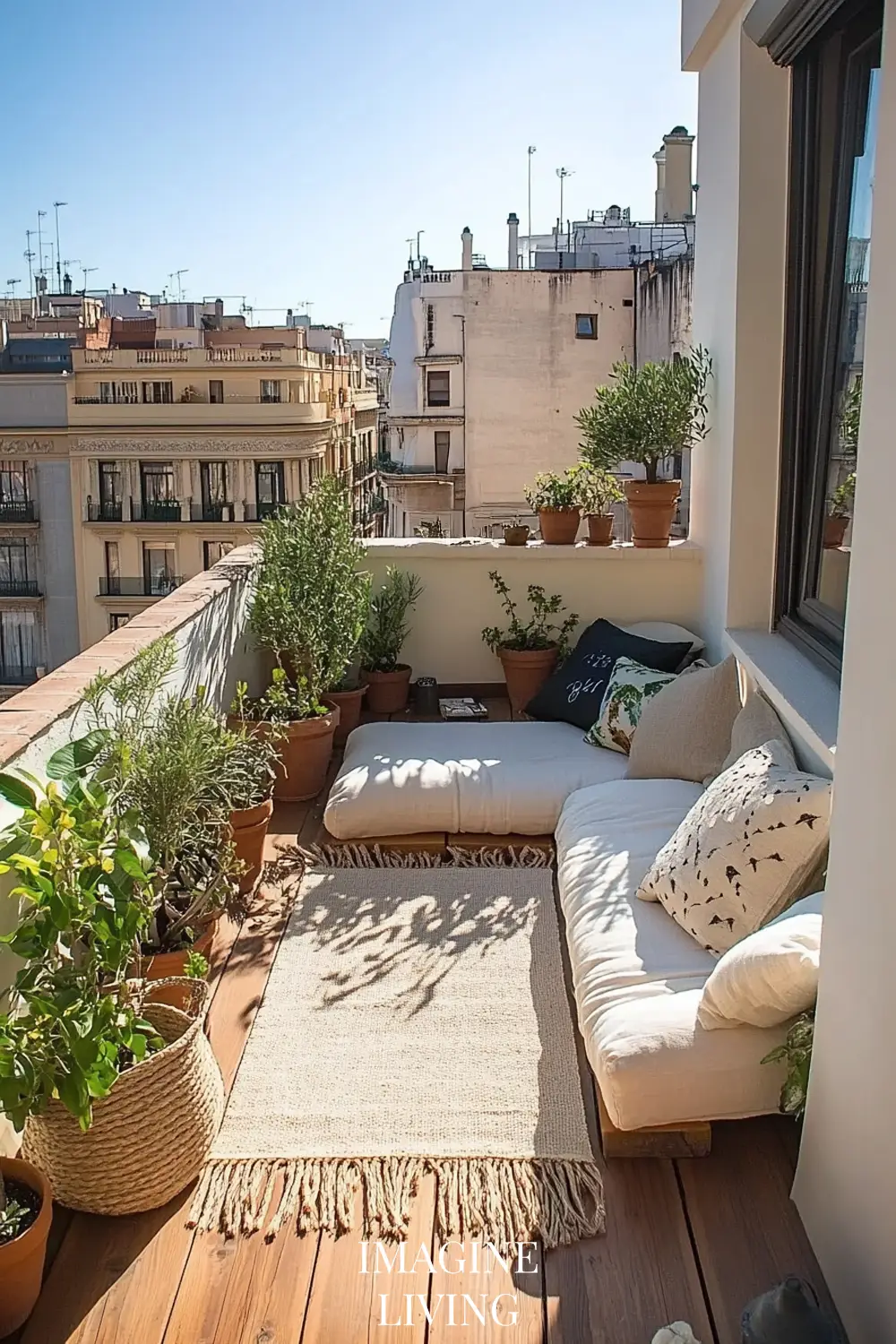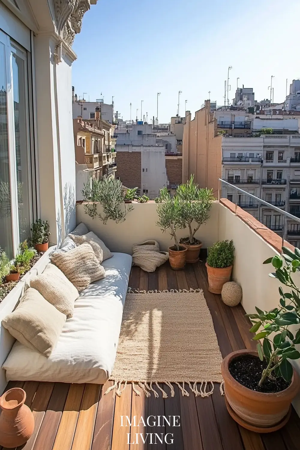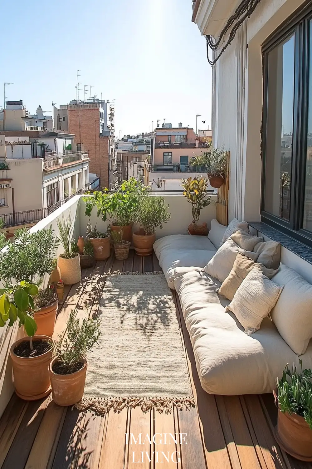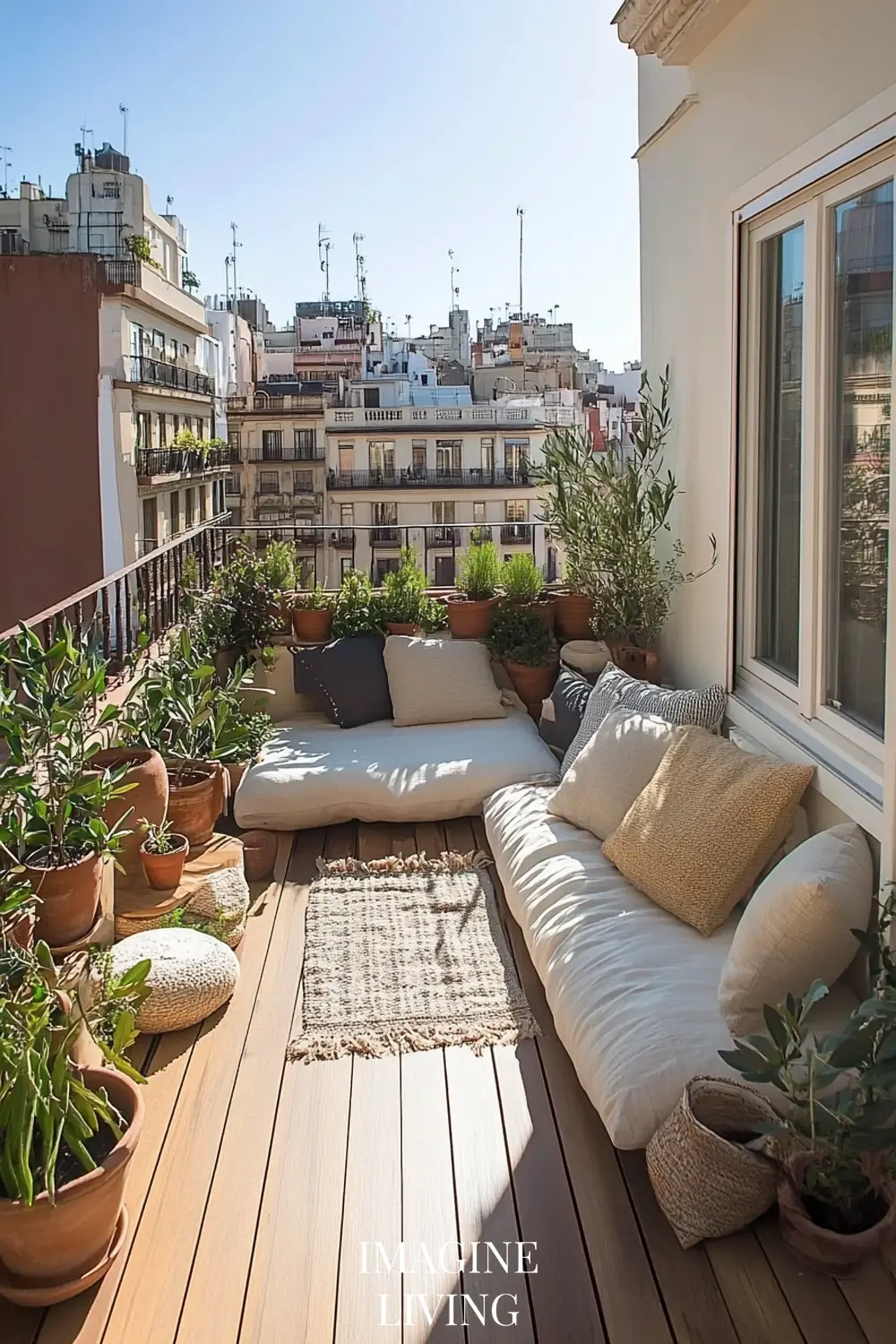 Rooftop terraces in cities like Paris or New York marry clean lines with curated softness. It’s all about creating intimacy within an expansive view. Here, structured greenery meets tactile comfort.