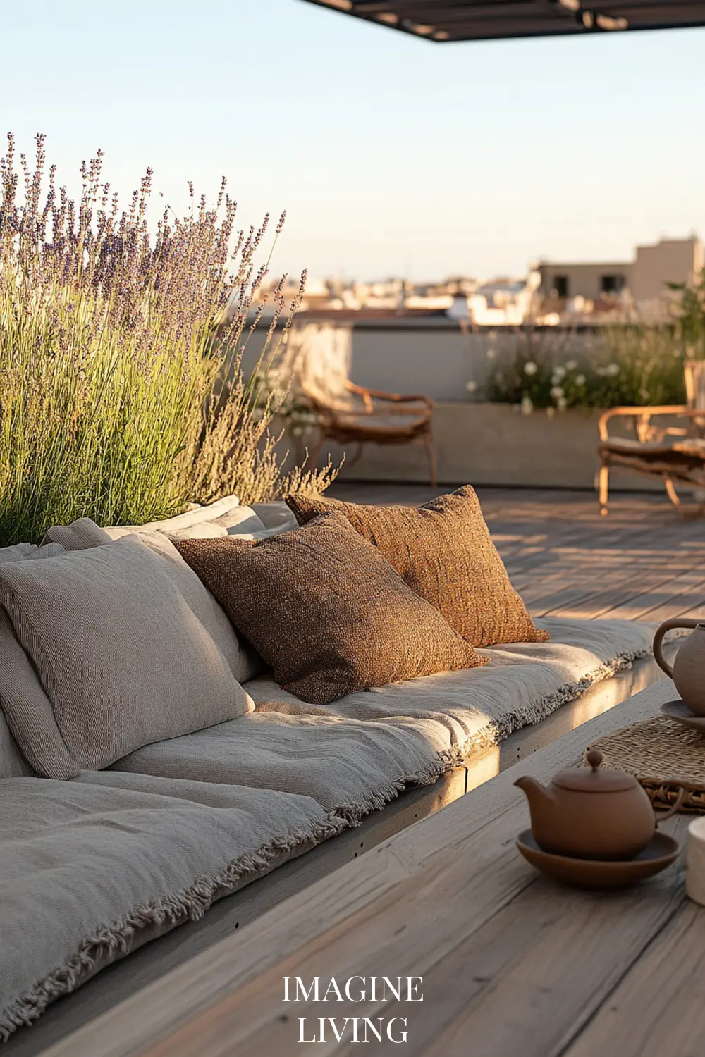 Avoid bulky or dark furniture. Keep everything low to the ground, airy, and close to nature. The horizon should be uninterrupted.