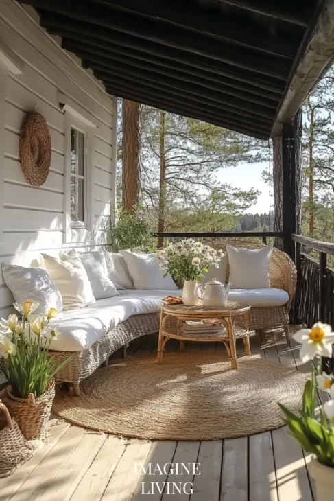 Scandinavian-style porches offer a quiet kind of luxury—rooted in simplicity, light, and connection to the natural world. These spaces are not over-styled or polished, but thoughtful and intentional. Every element has a role, whether it’s a linen throw draped on a bench or a cluster of lavender pots catching the afternoon light.