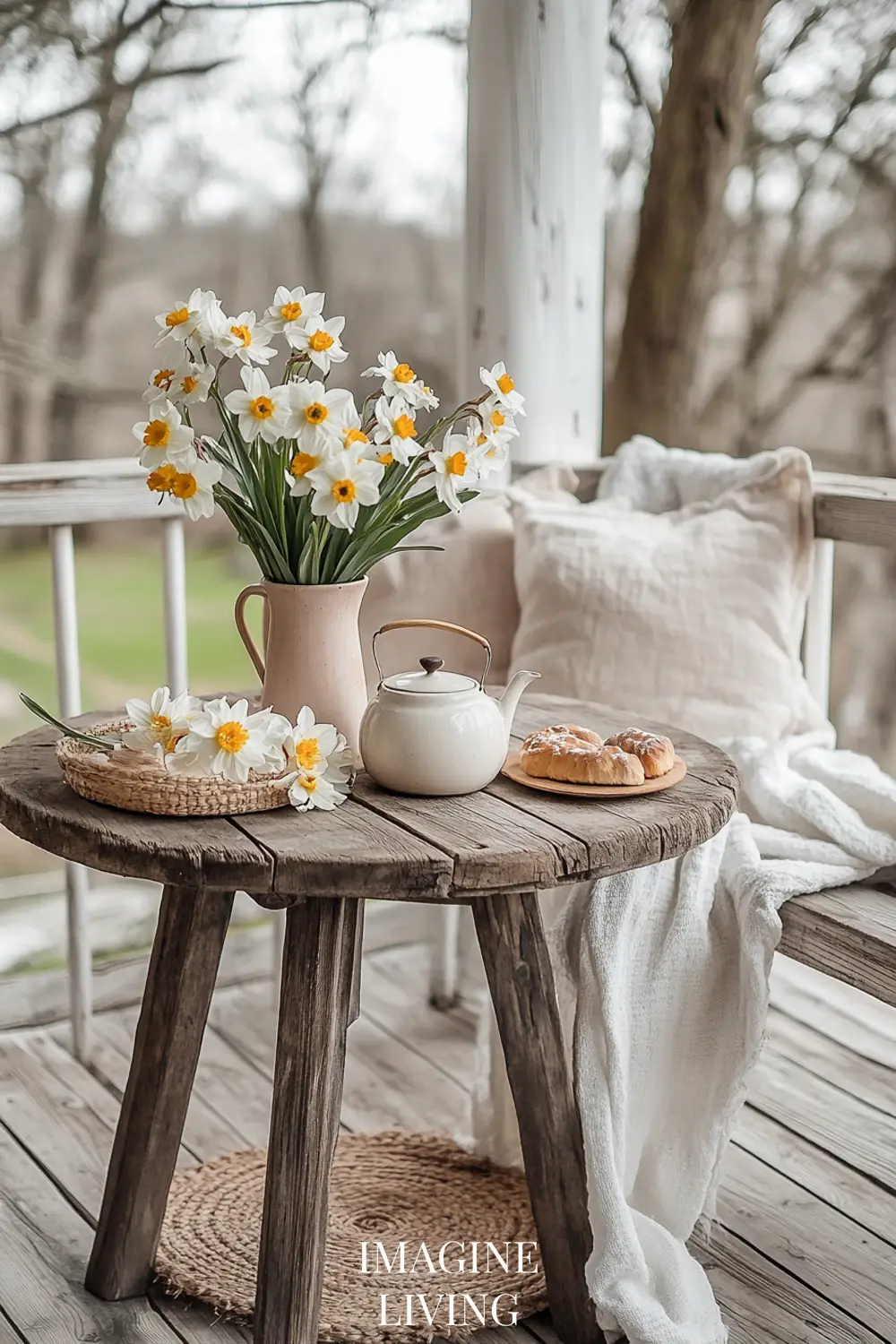 - Whitewashed or natural wood furniture