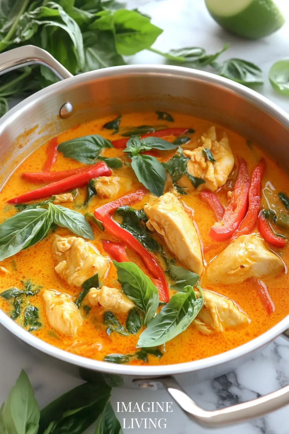 Stir in lime juice to brighten the dish. Serve over jasmine rice, topped with fresh basil or cilantro and lime wedges.