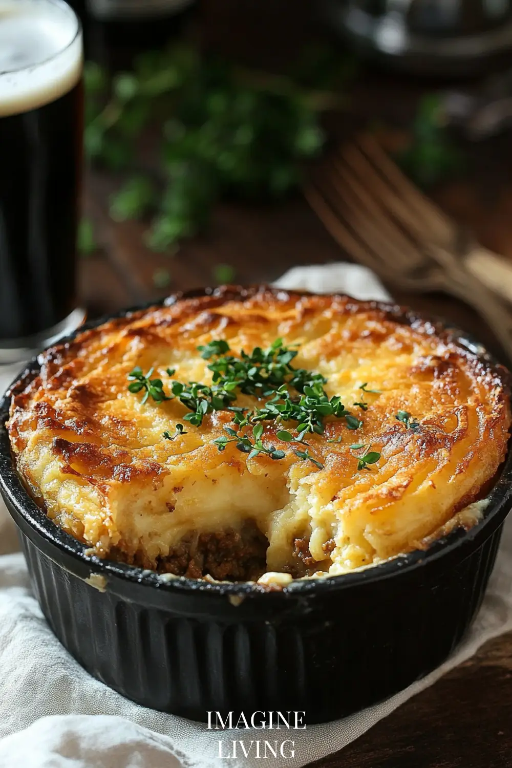 Bake the cottage pie for 25–30 minutes, or until the top is golden and the filling is bubbling around the edges. Let it rest for 5–10 minutes before serving.