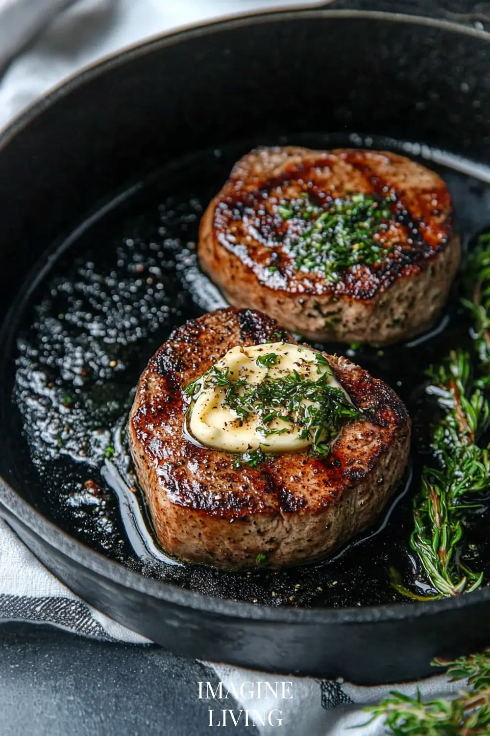 Filet is naturally tender and doesn’t need marinating, but a simple butter baste enhances flavor.