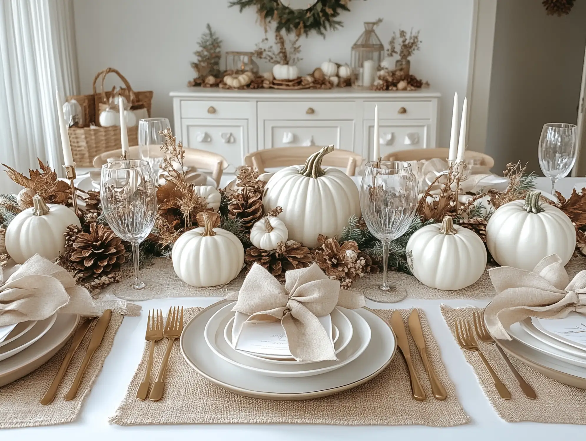 - White Pumpkins: Use real or faux pumpkins in varied sizes for visual interest.
